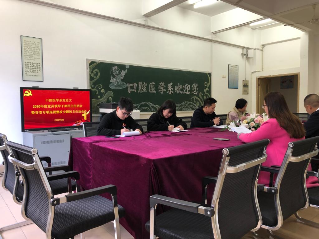 根据《中共漳州市纪委 中共漳州市委组织部关于认真开好2020年度全市县以上党和国家机关党员领导干部民主生活会的通知》(漳委组〔2020〕17号)部署要求,2月5日上午,口腔医学系党总支在致馨楼207会议室召开了2020年党总支民主生活会暨省委专项巡视整改专题民主生活会,会议由系党总支书记陈莉苹主持,学院党委委员、副院长陈义三到会监督指导,系副主任安厚鹏列席会议。