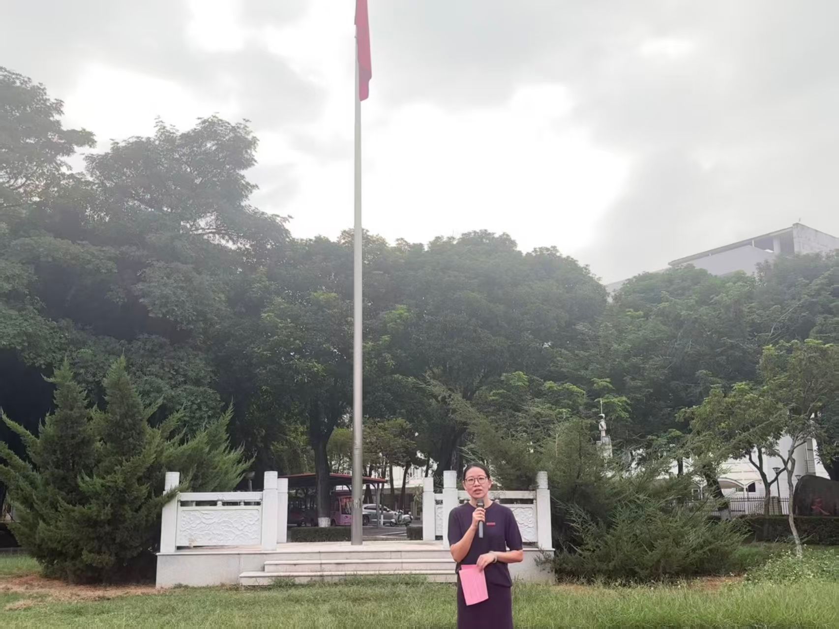 7时,国旗护卫队迈着铿锵步伐护送五星红旗入场。雄壮国歌声中,全体师生肃立行注目礼,注视国旗冉冉升起,迎风飘扬,现场氛围庄重而肃穆传递出师生对理想信念的坚定追求