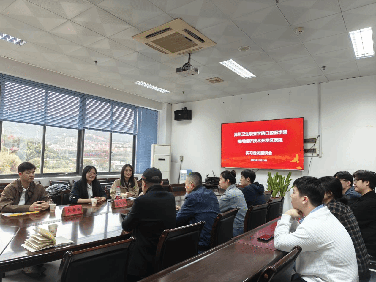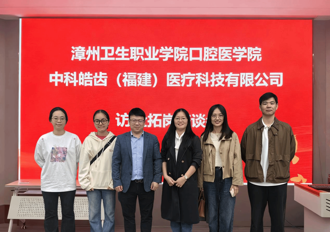 我院代表教师首先抵达中科皓齿医疗科技有限公司,开启“访企拓岗”之行。在公司负责人的陪同下,我院一行深入参观了企业的生产研发线与产品展示中心。在随后的座谈会上,双方围绕人才培养、技术创新与毕业生就业等核心议题进行了热烈交流。此次走访,为未来更深层次的产学研合作奠定了坚实基础。当日下午,我院一行又赶往福州经济技术开发区医院,开展实习走访,为实习学生送去学院的温暖与关怀。在医院领导的陪同下,老师们实地走访了口腔实习科室,深入了解学生的工作环境与实践内容。在与带教老师及实习生的座谈会上,带教老师们对我院实习生的综合素质给予了高度肯定,认为同学们专业基础扎实、学习主动、上手快,同时也对实践教学提出了宝贵建议。实习生们则分享了各自的成长与感悟,感谢学院和医院提供的宝贵平台与悉心指导。