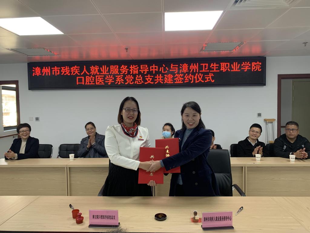 为充分发挥高校党组织和群团组织的社会服务功能,凝聚工作合力,扎实推进“我为群众办实事”工作深入开展,12月3日,在第30个国际残疾人日和第36个国际志愿者日来临之际,漳州卫生职业学院口腔医学系党总支与漳州市残疾人就业服务指导中心签订共建协议,并带领师生党员参加漳州市2021年“志愿助残 你我同行”嘉年华活动。