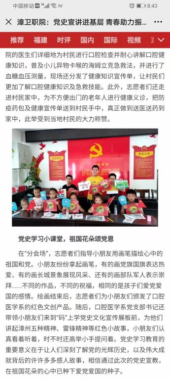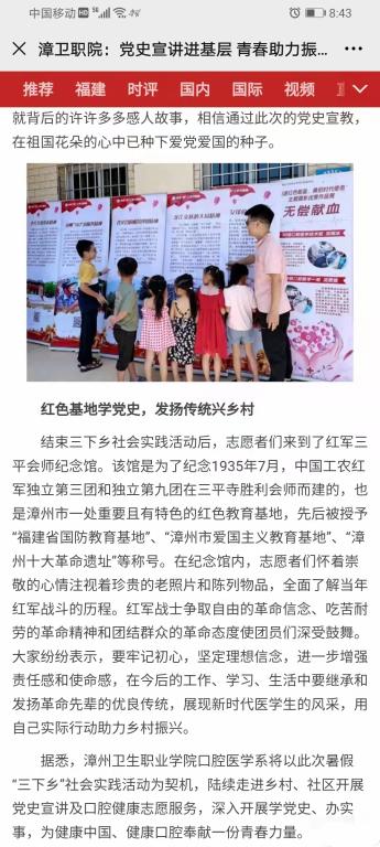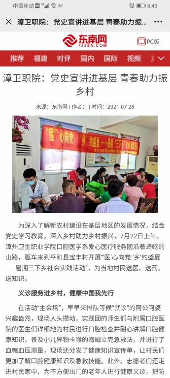 2021年7月28日,《东南网》刊发题为《党史宣讲进基层 青春助力振乡村》的报道,报道如下: