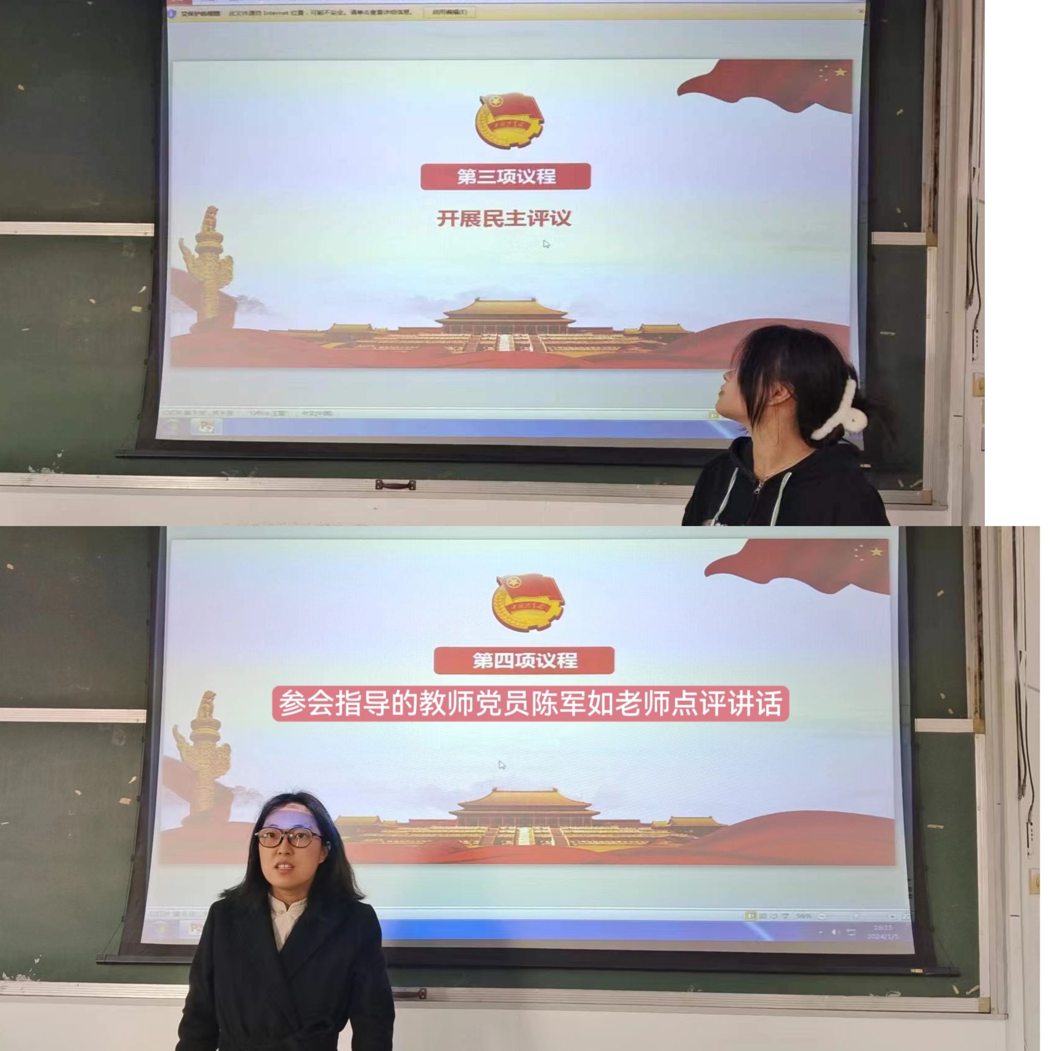 团支部组织生活会严格按照团中央有关要求,在会前以集中学习和自学相结合的方式组织全体团员认真学习重温《习近平新时代中国特色社会主义思想专题摘编》《论党的青年工作》等著作相关篇目,重点学习重温习近平总书记对团员和青年的重要要求等。会上,团支部书记从四个议程开展组织生活会,即:报告了《团员和青年主题教育开展情况及不足》;组织团员逐个发言、交流体会、查找不足,其他团员对其进行评议,肯定成绩、指出不足;坚持民主集中制,严格执行评议标准,从各方面依次开展自我评定和相互评议,认真总结反思,以公平公正公开为原则开展团员教育评议工作;重温入团誓词。