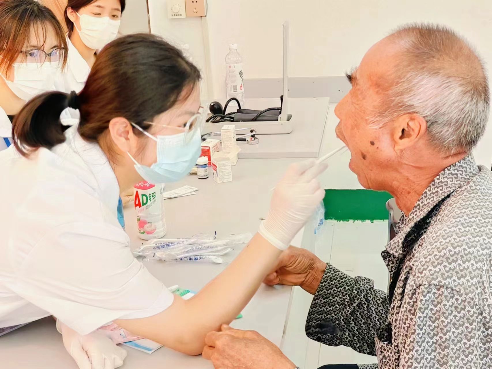 服务小队师生先与村委、信息员等深入开展交流座谈,梳理了目前村民口腔健康现状与急需解决的问题。随后,村相关负责人带领服务小队师生前往便民服务站、幸福院等地为村民开展口腔健康宣教与义诊、血压血糖检查等。此外,服务小队师生还为村民赠送一批爱牙、护牙保健物资、健康宣传手册等,受到了村民的一致好评。