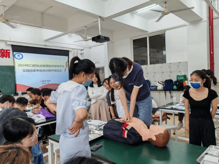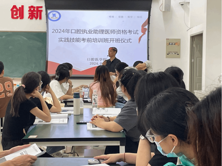 为做好2024年度口腔执业助理医师资格考试工作,进一步提升我院考试通过率,口腔医学院于2024年6月3日-6月7日举办口腔执业助理医师实践技能考试考前培训班。