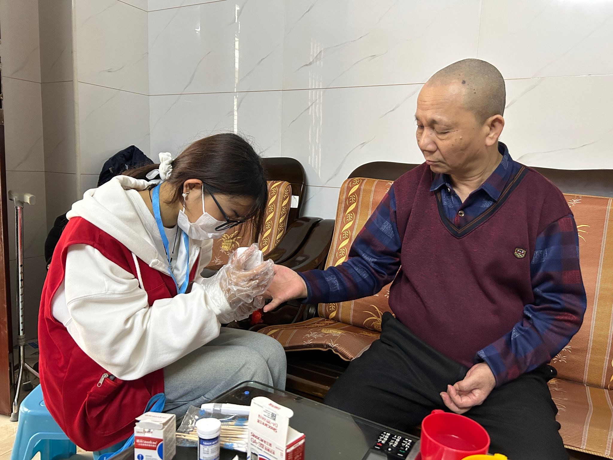 活动当天,服务队分组深入残疾人家庭。医生们细致检查居民口腔健康状况,针对龋齿、牙周病等常见问题提出治疗建议,并为长期卧床的残疾人讲解口腔护理技巧。除了专业医疗服务,学院还为困难残疾人家庭送上了精心准备的“爱心礼包”,包含牙膏、软毛牙刷等口腔护理用品。