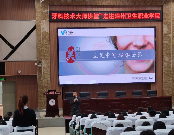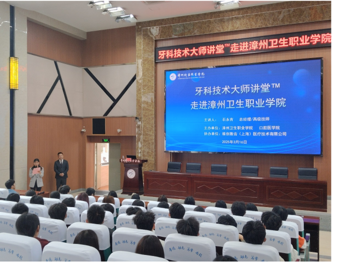 为提高学生专业能力,助力口腔医疗行业人才培养,促进学生就业,3月16日,漳州卫生职业学院口腔医学院邀请维创数齿(上海)医疗技术有限公司总经理石永吉进校开展“牙科技术大师讲堂进校园”活动。会议由口腔医学院副院长许淑茹主持,吸引了校企合作单位代表、学校师生、家委代表等共约200人参加。