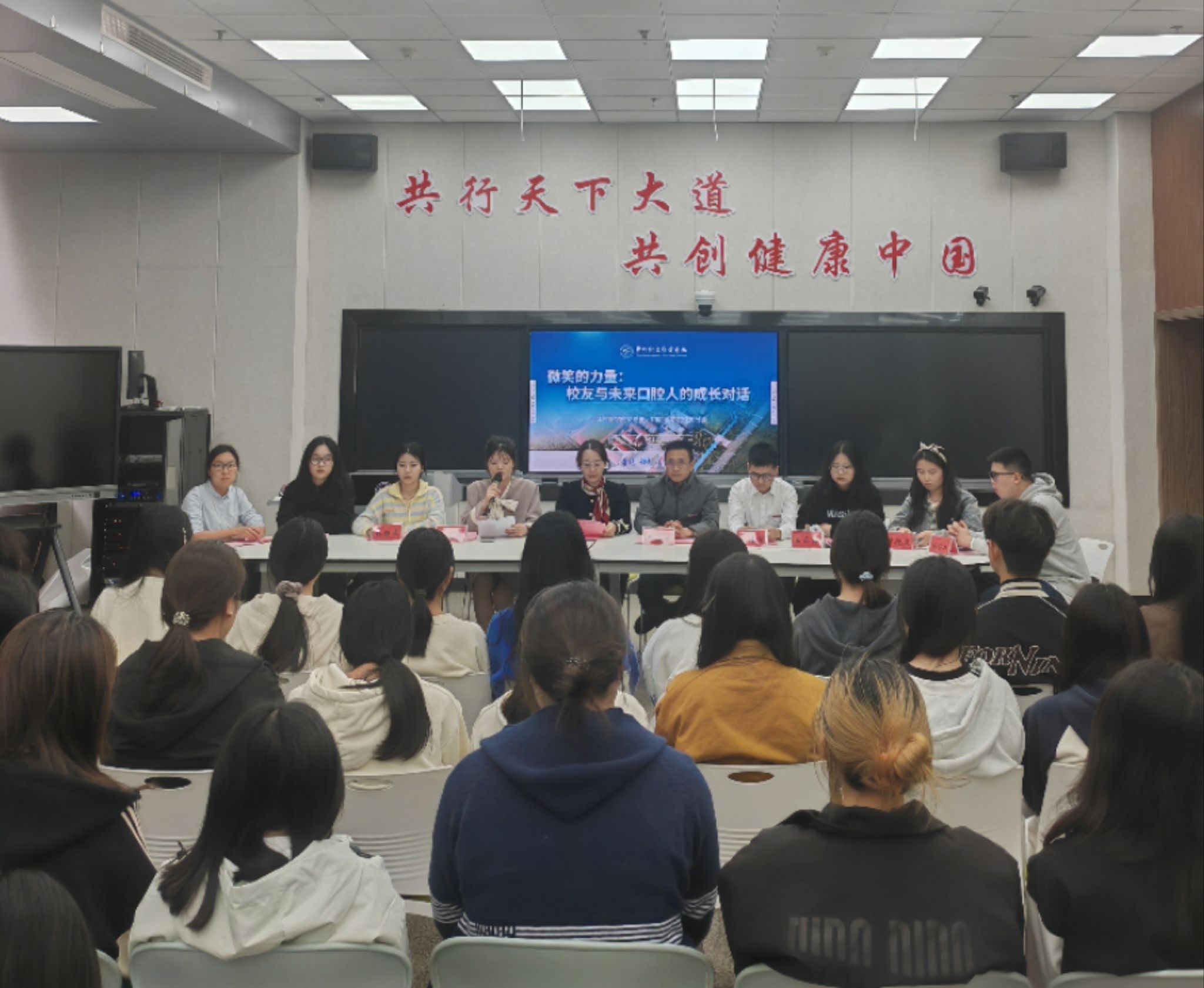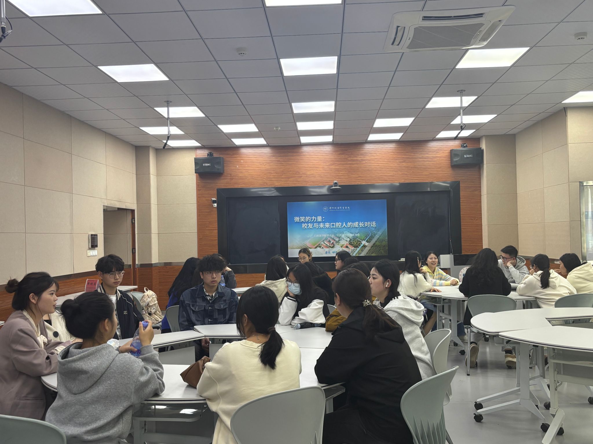 3月16日下午,口腔医学院在图书馆6楼智慧教室成功举办了“微笑的力量:校友与未来口腔人的成长对话”优秀校友交流会。本次活动由口腔医学院党总支和校友分会联合主办,旨在通过校友的经验分享,为即将踏上实习岗位的在校生提供宝贵的职业指导和实习建议。学院社会合作处处长蔡志远、口腔医学院党总支书记陈莉苹,以及多位优秀校友和在校生共同参与了此次活动。