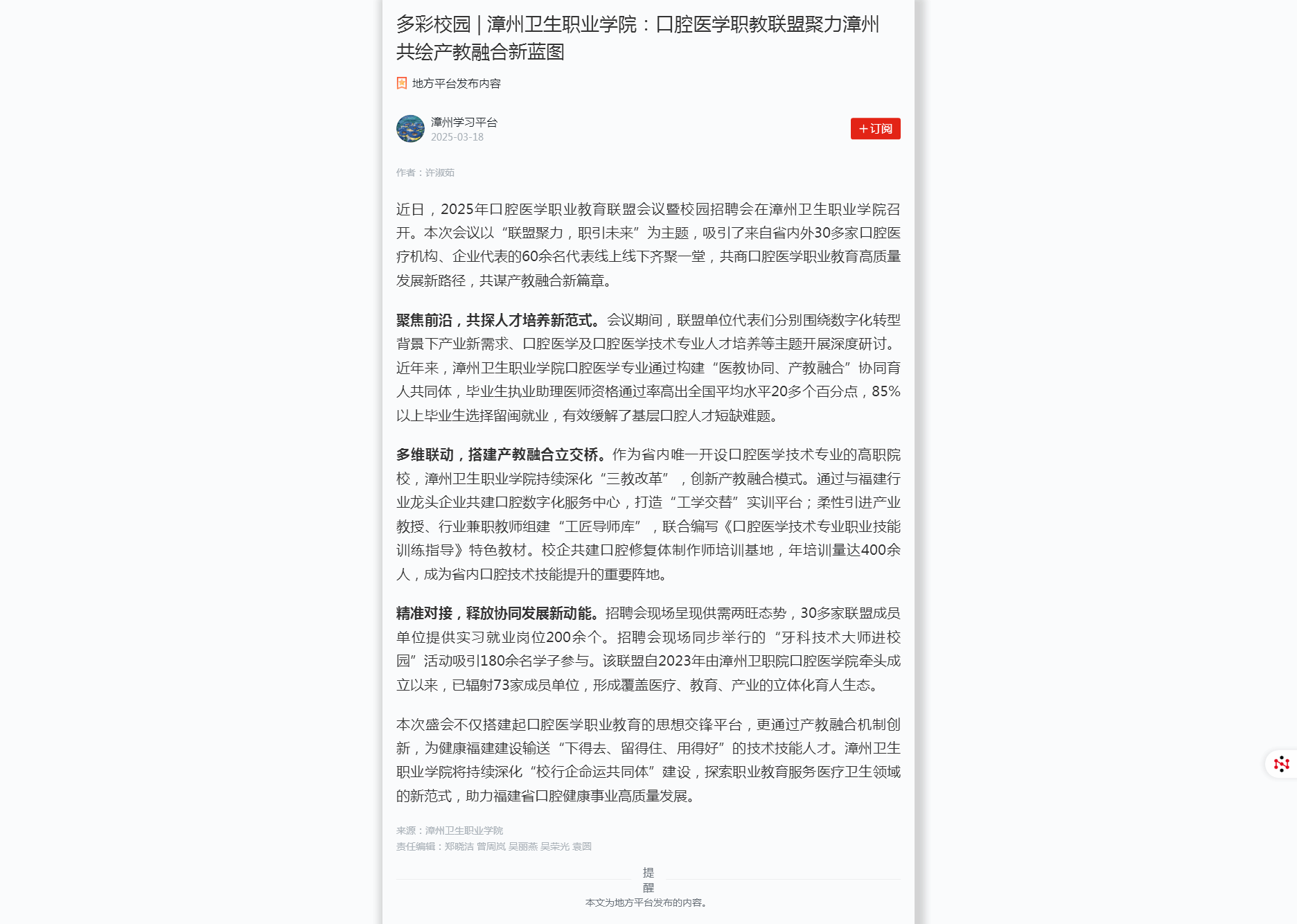 口腔医学职教联盟聚力漳州共绘产教融合新蓝图