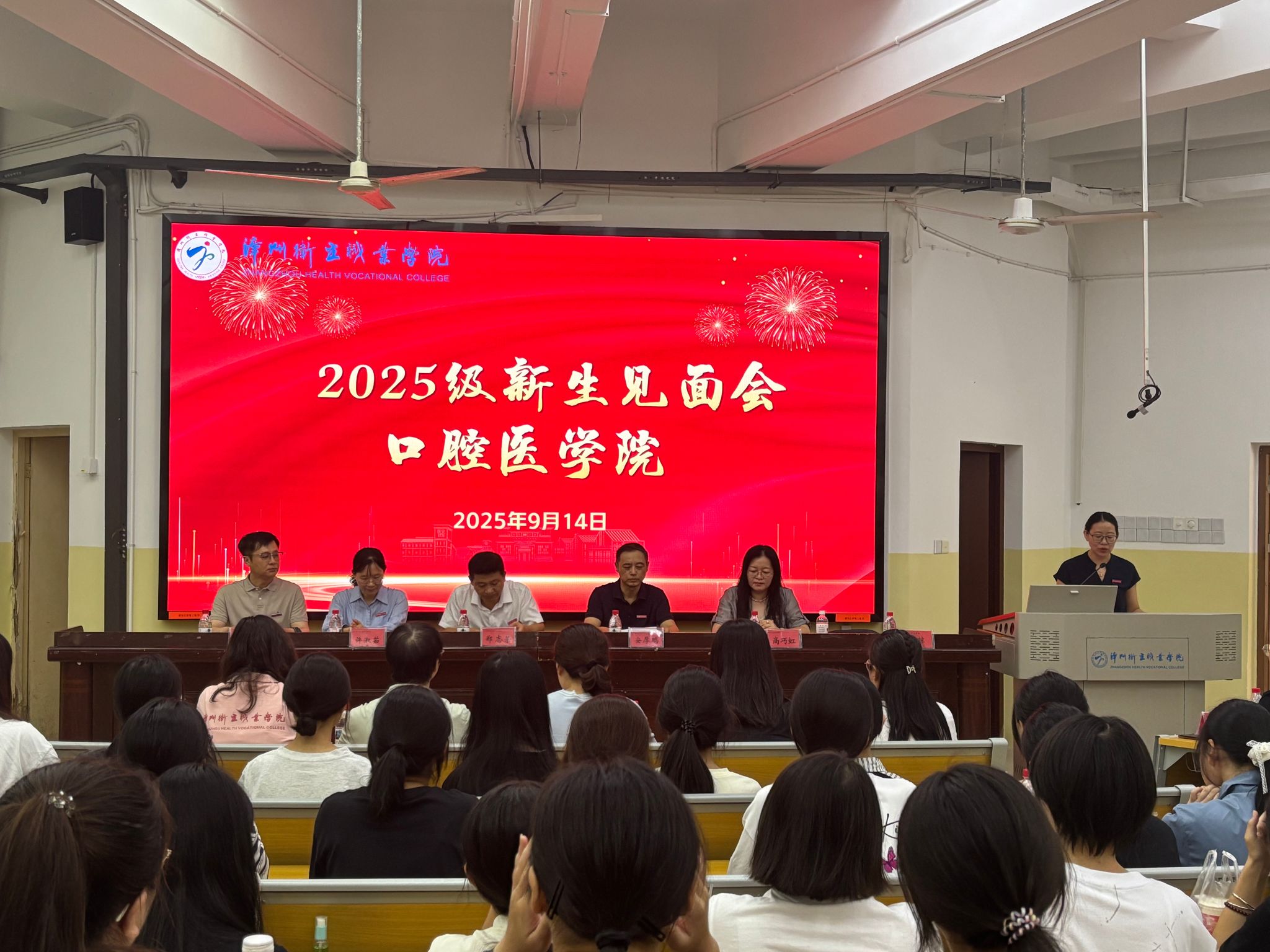 9月14日,学院 2025 级新生见面会在明德楼隆重举行。分管领导郑志荣副校长、学院党政领导班子、学工队伍及教师代表共同出席,与全体新生面对面交流。会议由党总支副书记主持。