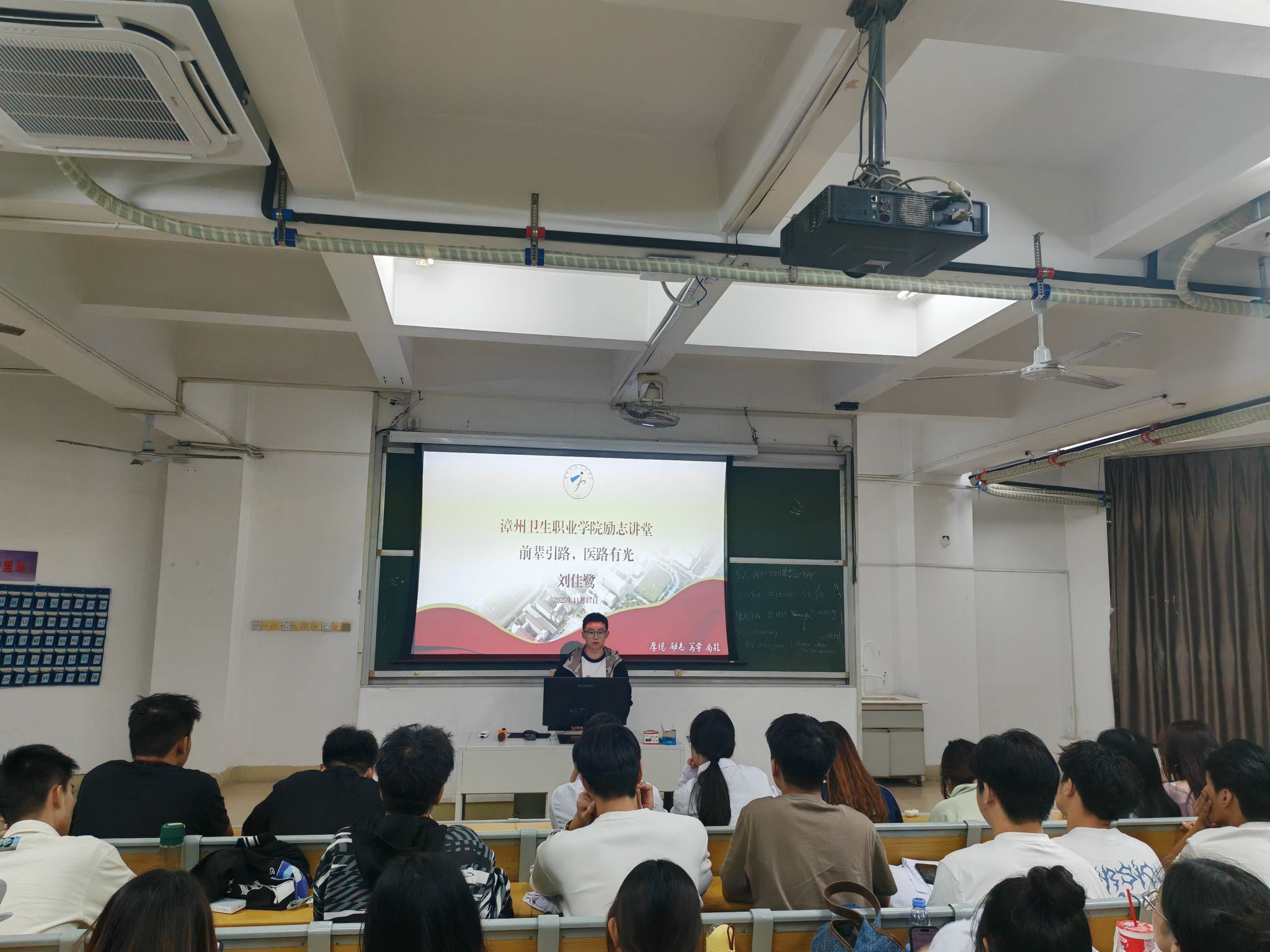 为充分发挥优秀校友的榜样引领作用,助力学生科学规划学业与职业发展11月17日晚,口腔医学院在致馨楼207教室成功举办“前辈引路,医路有光”主题励志讲堂活动。活动特邀我院2024届优秀毕业生、现职于漳州圆山医院的刘佳鹭校友返校,与学弟学妹们展开面对面交流,分享成长经历与职业心得