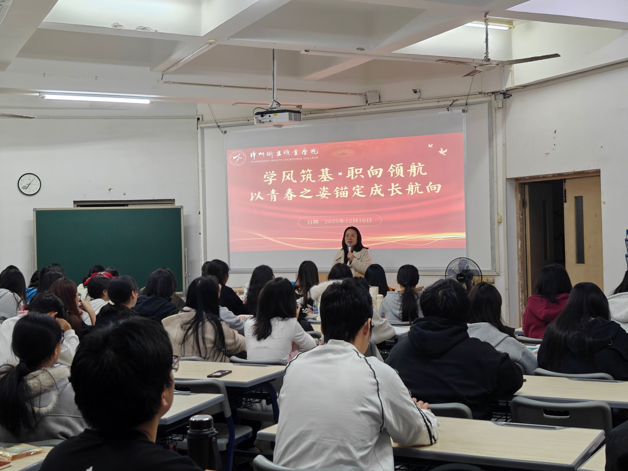 12月16日,我院在致馨楼506教室开展“学风筑基・职向领航”主题团课。团课由学院团总支书记主讲,面向2025 级高职口腔医学、三、四班全体同学,旨在引导新生明晰就业前景、破解生涯困惑,并将学风建设与期末备考有机结合。