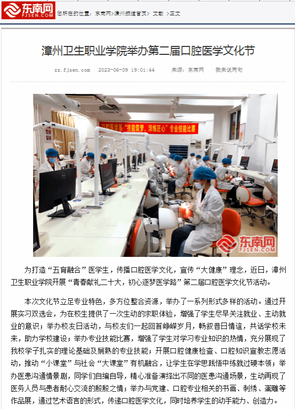 东南网:漳州卫生职业学院举办第二届口腔医学文化节