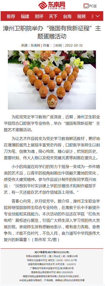 东南网:漳州卫职院举办“强国有我新征程”主题蛋雕活动
