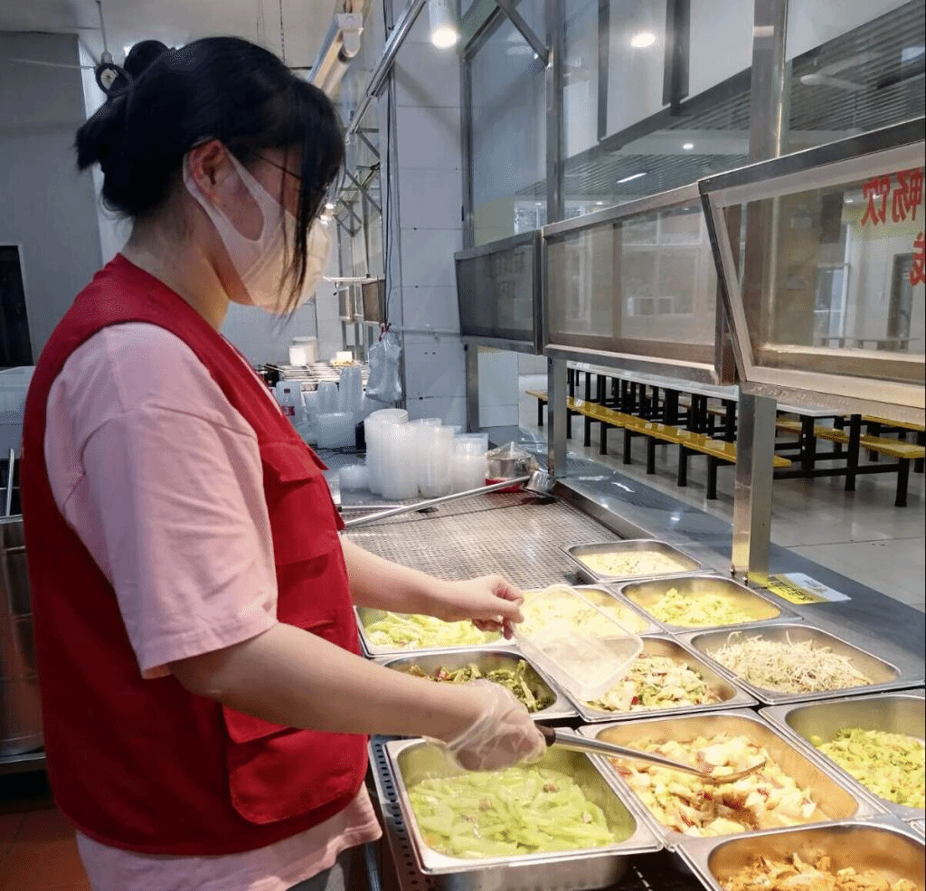 在此次活动中,志愿者们带着充分的热情早早到达思源食堂,志愿服一穿,带上帽子,系上围裙,带上手套,进入后厨之后就迫不及待的开始“上岗”了,她们帮助食堂的叔叔阿姨们切菜、洗菜、擦桌子、打扫卫生,给其他同学打菜打饭等。平时看似简单的工作,志愿者亲生体验过才知道“行行皆辛苦”。她们看着自己的劳动成果,都有很大的充实感。