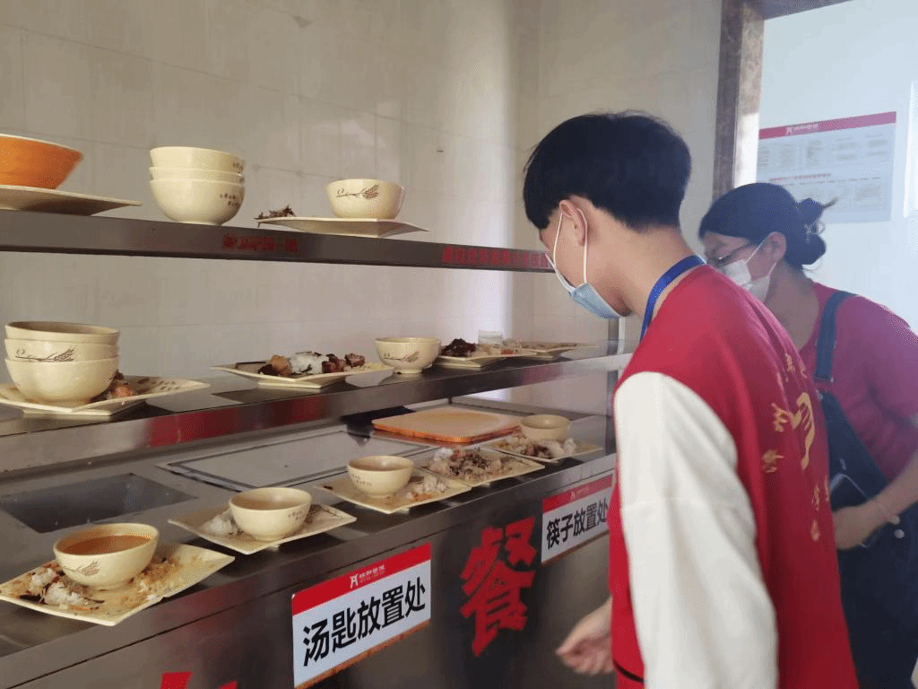 平时看似普通简单的工作,学生亲身体验后才知道“行行皆辛苦”。帽子一戴,围裙一系,手套一穿,学生们就迫不及待开始“上岗”了。体验中,帮厨的志愿者有过“又是洗菜,又是打扫,一刻也不得闲”的唠叨,也有过“让堆积如山的脏盘子干净如初”的喜悦。