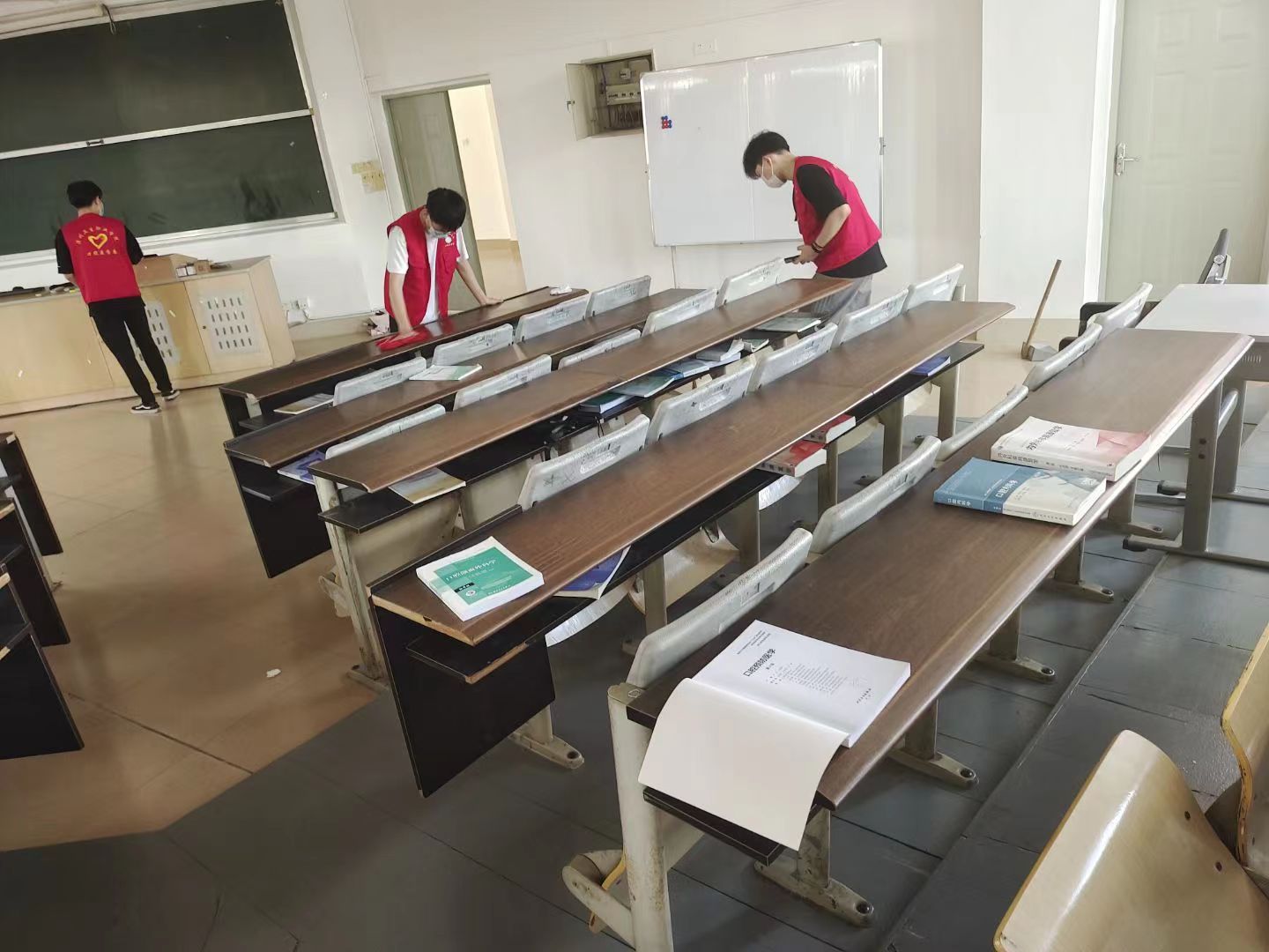 站岗,变身安全小卫士的志愿者们,在近30度的室外汗流浃背,协助保安对入校师生核对健康信息、测量体温、引导学生有序排队领取快递外卖等,真正肩负起守护校园安全的职责;保洁志愿者弯腰把垃圾捡起、把灰尘擦掉、把课桌排好,当起了校园美容师……在各个岗位上,学生们或请教叔叔阿姨,或与同伴并肩作战,从“一无所知”到“行家里手”,在劳动中一个个大变了模样。