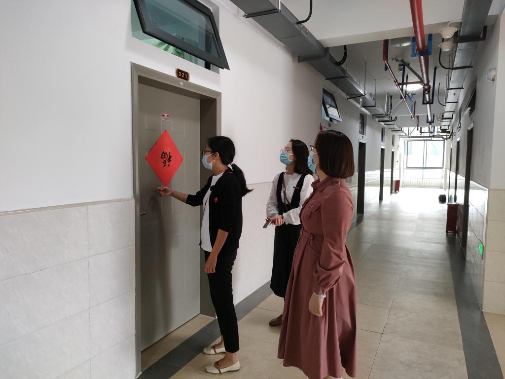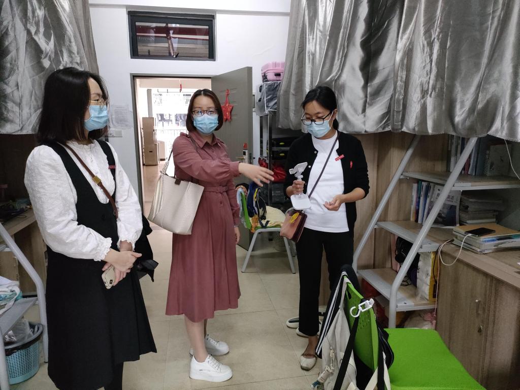 面对严峻的疫情形势, 我院转为线上教学,确保“停课不停学”。为落实疫情防控期间学生日常学习保障工作,3月20日下午,口腔医学系书记陈莉苹带领辅导员、宿舍楼栋负责人走访了学生宿舍,深入了解学生思想动态、身心状态,贴近学生学习生活,传递对学生的关怀并加强防疫安全教育。