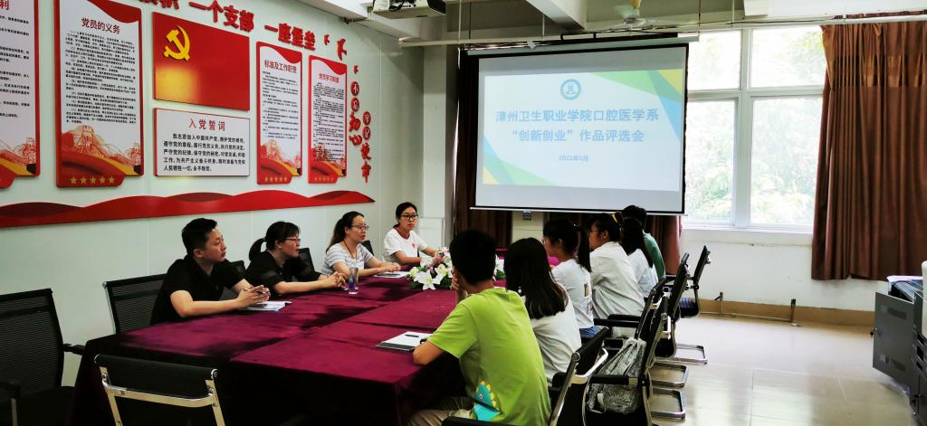 为深入贯彻落实全国教育大会精神,加快创新创业人才培养,选拔创新创业人才,按照学校第七届创新创业大赛的统一部署,口腔医学系于5月28日上午在致馨楼207会议室召开第七届“创新创业”作品评选会。系部党总支书记、学工办、辅导员、专任教师代表及部分创新创业作品主要负责同学参加了会议。