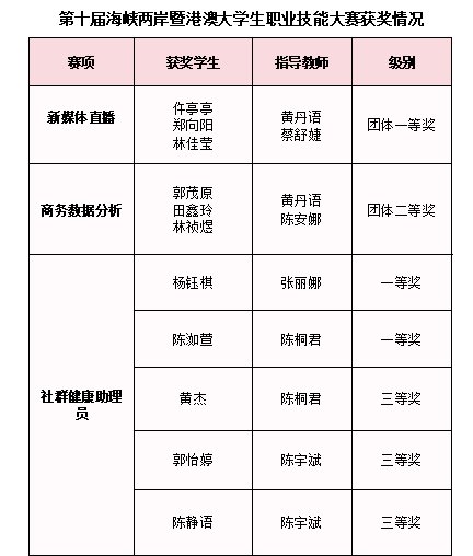 近日,第十届海峡两岸暨港澳大学生职业技能大赛落下帷幕,我院学子共获得个人一等奖2项、三等奖3项,团体一等奖1项、二等奖1项的优异成绩