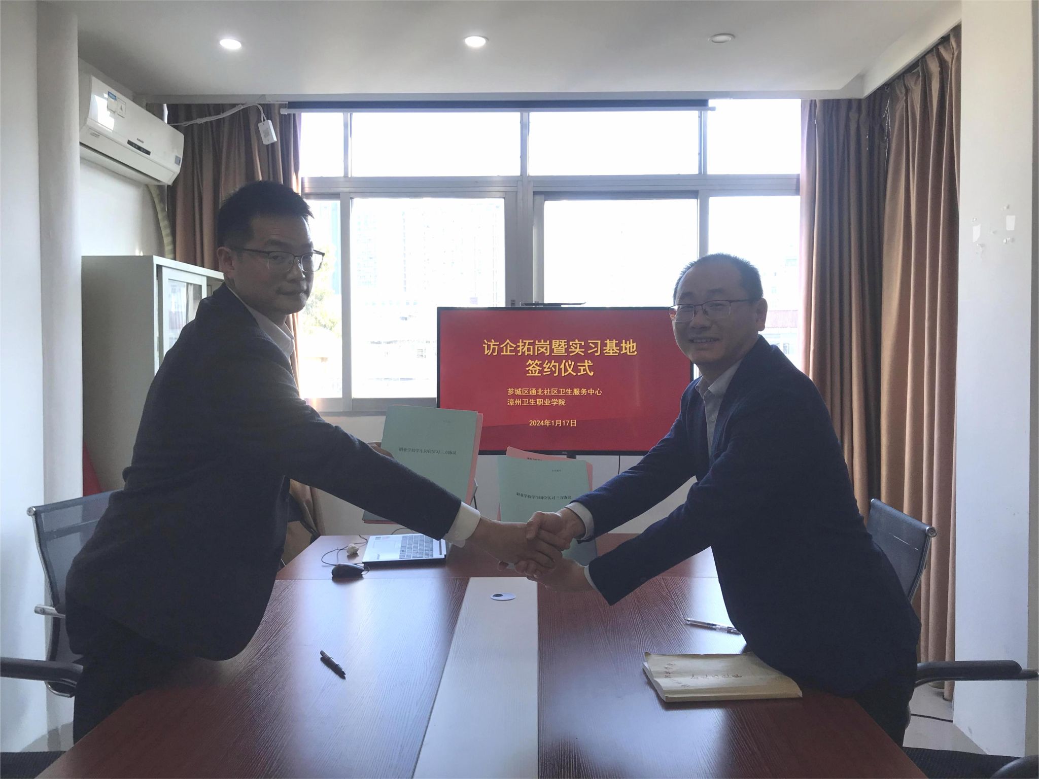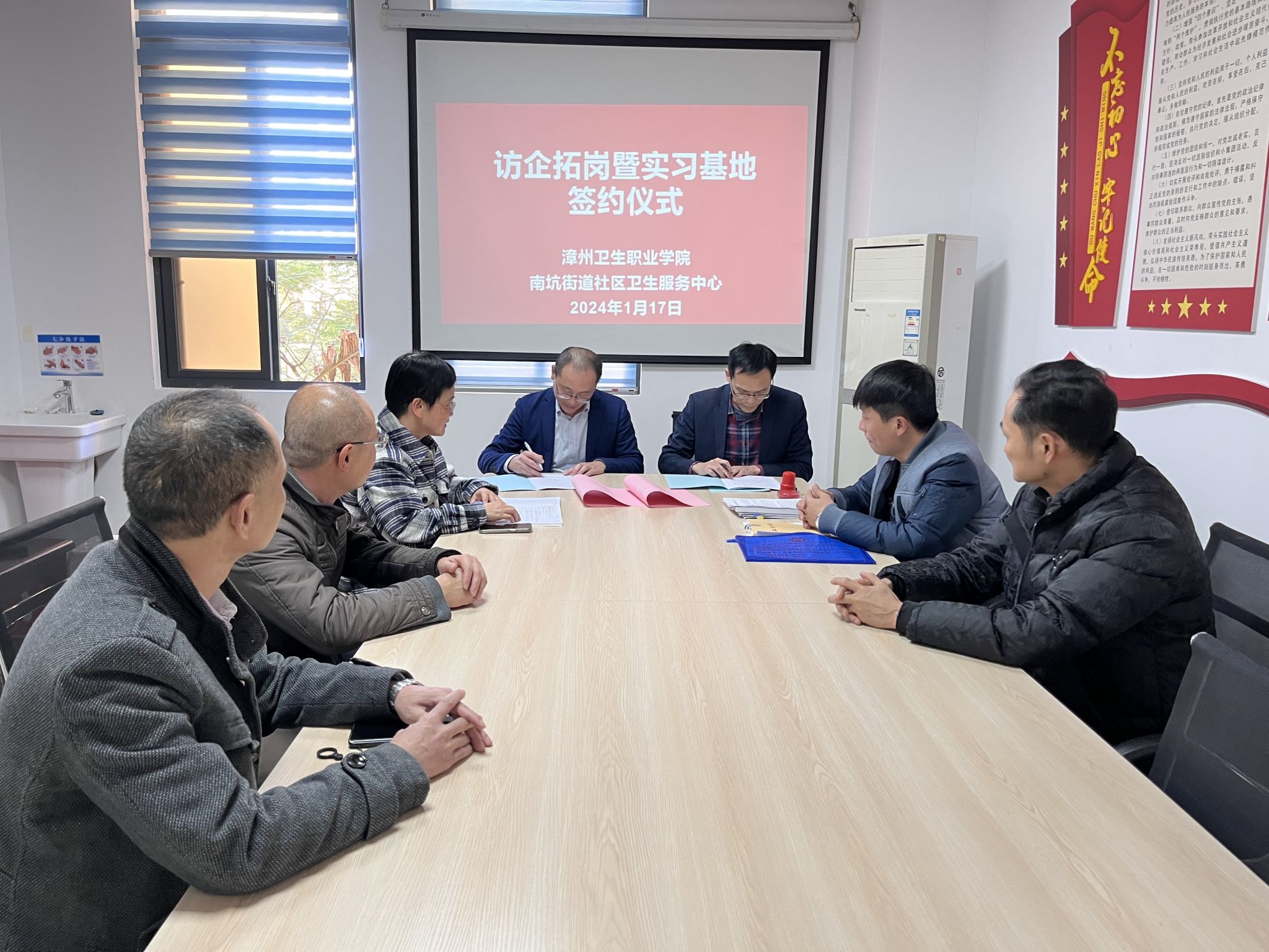 为了深入贯彻落实党中央、国务院关于高校毕业生就业工作的决策部署,推动主题教育走深走实,做好我院2024届毕业生就业创业工作,1月17日下午,我院林院长、预防医学专业饶老师和王老师前往南坑社区卫生服务中心和通北社区卫生服务中心开展“访企拓岗促就业”专项行动,并举行预防医学专业实习基地签约仪式。