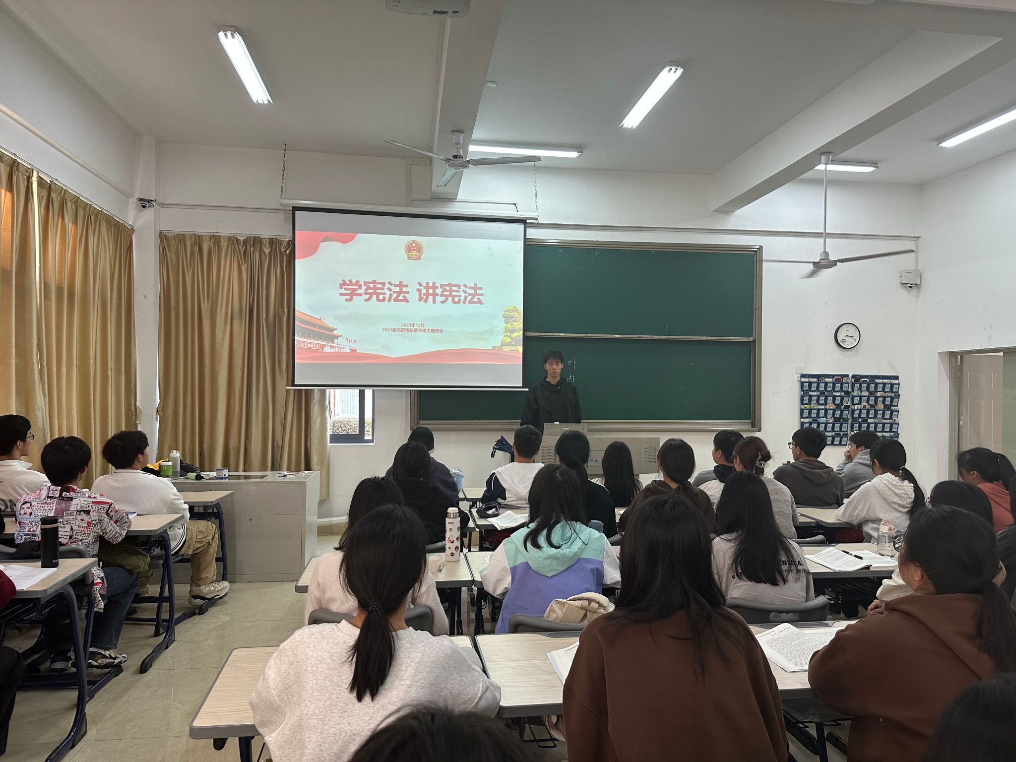 宪法宣传周期间,我院组织了宪法晨读、主题班会、宪法歌曲传唱等多项活动,让全体学生参与到宪法学习活动中,推动学习活动广覆盖、见实效。宪法晨读活动中,同学们齐聚教室,共同诵读宪法的重要条款和内容。同时利用班会进一步普及宪法基本知识,并引导学生深入学习宣传宪法、民法典、教育法律法规、爱国主义教育法等相关法律知识,从而深化学生对宪法精神和内容的理解。宪法歌曲《宪法伴我们成长》传唱活动中,学生以优美的旋律传达了对宪法的敬意和尊重,也唤起了同学们对宪法的关注和认识。