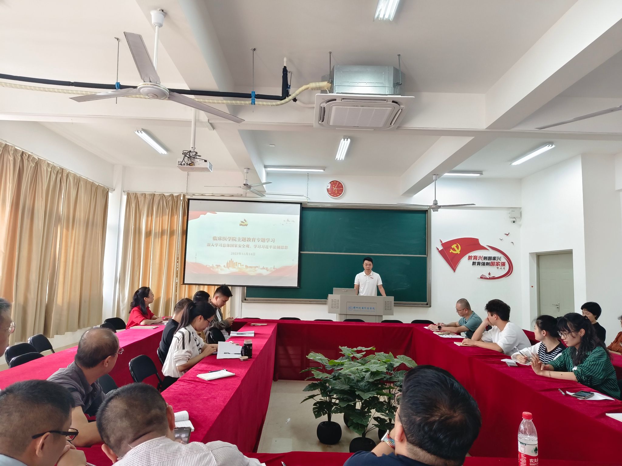 为深入学习贯彻习近平新时代中国特色社会主义思想,推动主题教育走深走实,11月14日下午,我院开展深入学习总体国家安全观、习近平法治思想专题学习会,会议由我院组织委员杨老师主讲。