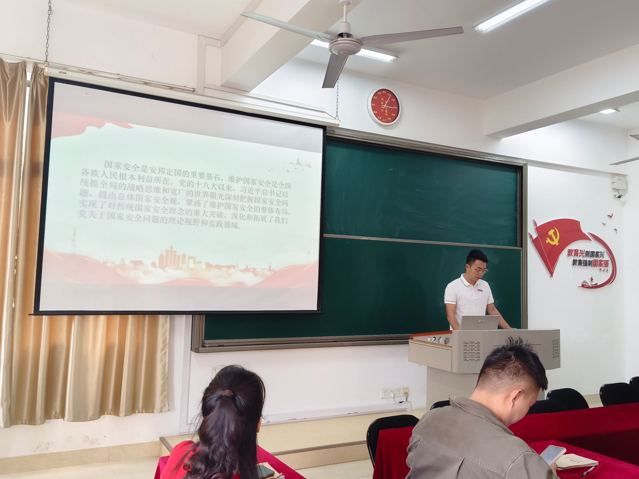 会上,杨老师指出,国家安全是安邦定国、民族复兴的重要基石。我们要坚决做到“总书记怎么说、我们就怎么做”,坚定不移走中国特色国家安全道路,切实以新安全格局保障新发展格局。我们应着力提高能力本领、夯实基层基础、创新社会治理,筑牢国家安全的坚固屏障,为推进国家安全体系和能力现代化奉献力量。要深入学习习近平法治思想,补足精神之钙,铸牢思想之“魂”;生动践行习近平法治思想,坚持在法治轨道上推进政法工作现代化;精准领会习近平法治思想,坚守维护社会公平正义的最后一道防线。