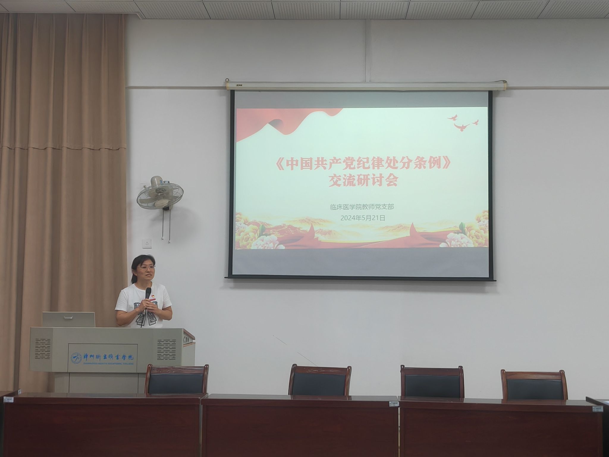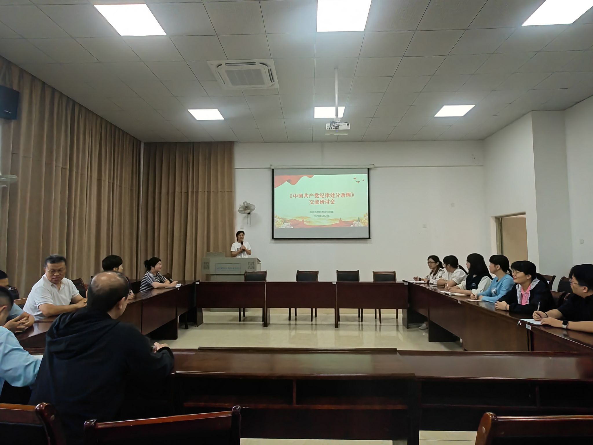 为推进党纪学习教育走深走实,5月21日,我院教师党支部全体党员在厚德楼504开展党纪学习教育专题研讨会,重点围绕修订后的《中国共产党纪律处分条例》开展学习交流。