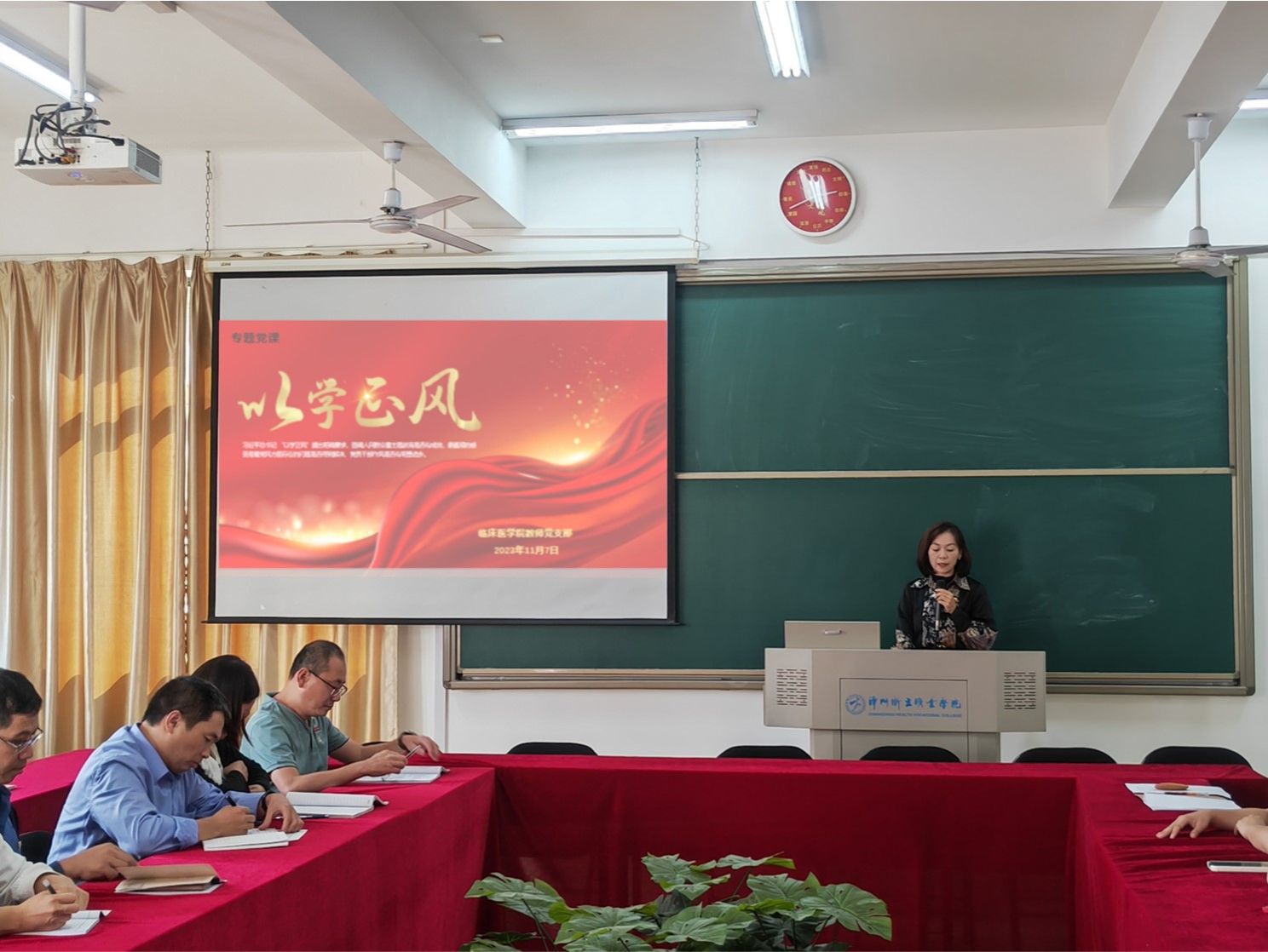 为充分发挥党员的先锋模范作用和党支部的战斗堡垒作用,进一步推动主题教育走深走实,11月7日上午,临床医学院教师党支部书记陈老师以《以学正风》为题在厚德楼305为支部全体党员作了主题教育专题党课。