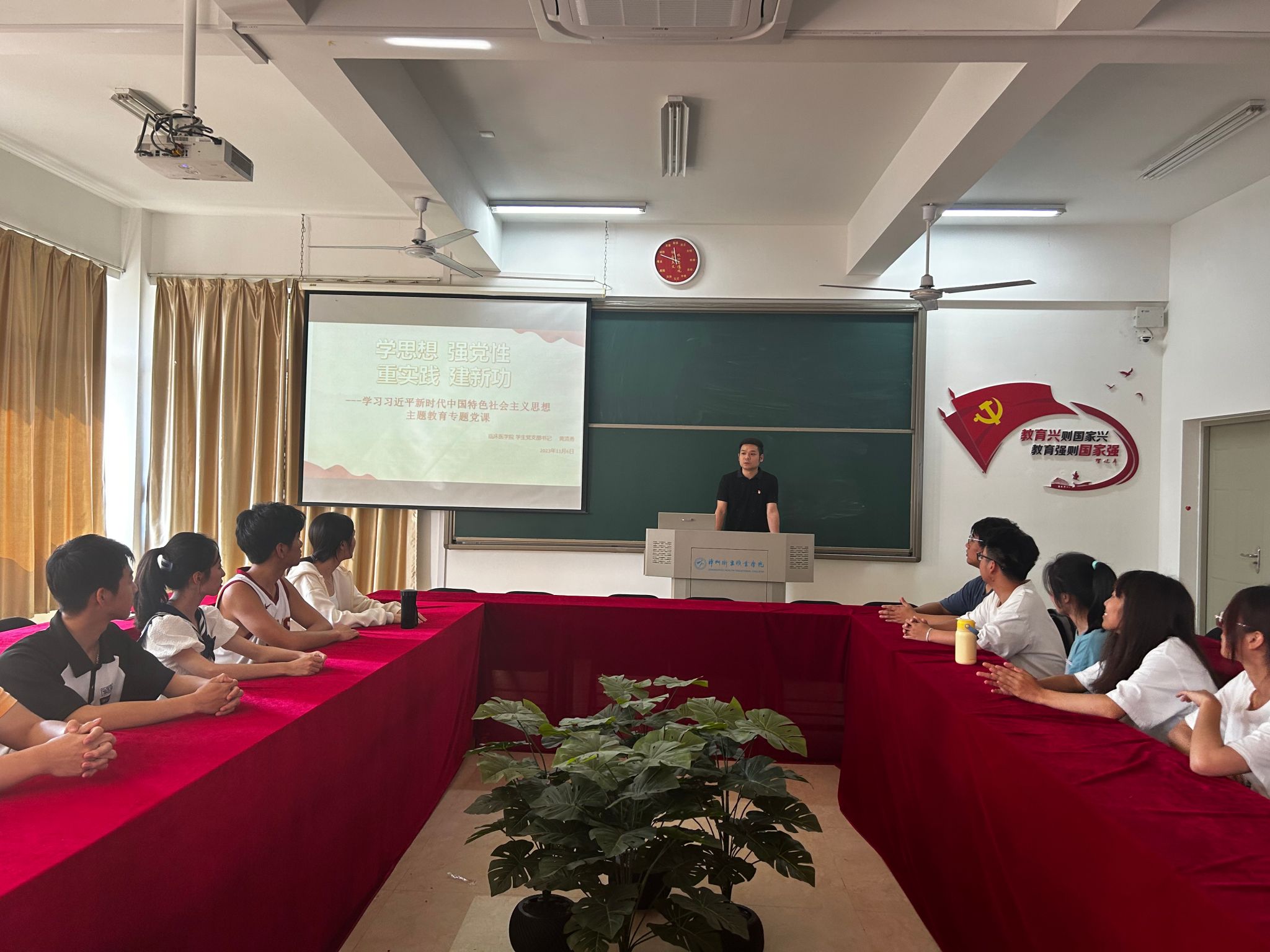 为切实把学生党员的思想统一到学习习近平新时代中国特色社会主义思想上来,推动主题教育持续走深走实,11月6日下午,临床医学院学生党支部书记黄老师在厚德楼305教室开展题为《学思想 强党性 重实践 建新功》的主题教育专题党课,临床医学院全体学生党员参加学习。