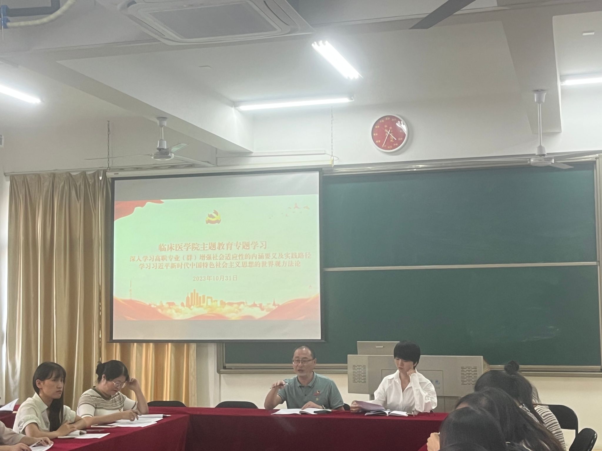 为推动主题教育走深走实,10月31日下午,我院开展深入学习高职专业(群)增强社会适应性的内涵要义及实践路径、习近平新时代中国特色社会主义思想的世界观方法论主题教育专题党员学习会。会议由我院林院长主讲,院部全体教职工参加。