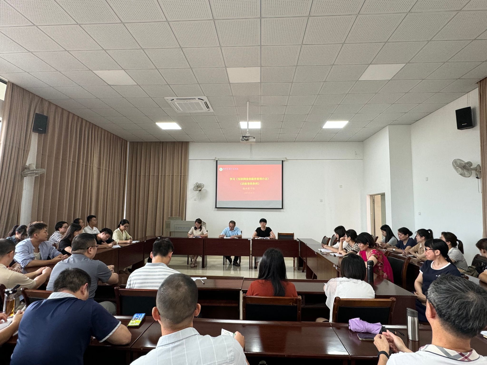 为深入贯彻落实党的二十大精神和习近平总书记关于宗教工作的重要论述,6月11日,我院组织全体教职工学习《互联网宗教信息服务管理办法》《宗教事务条例》。本次学习会议由党总支书记主持并主讲,全体教职工参加会议。