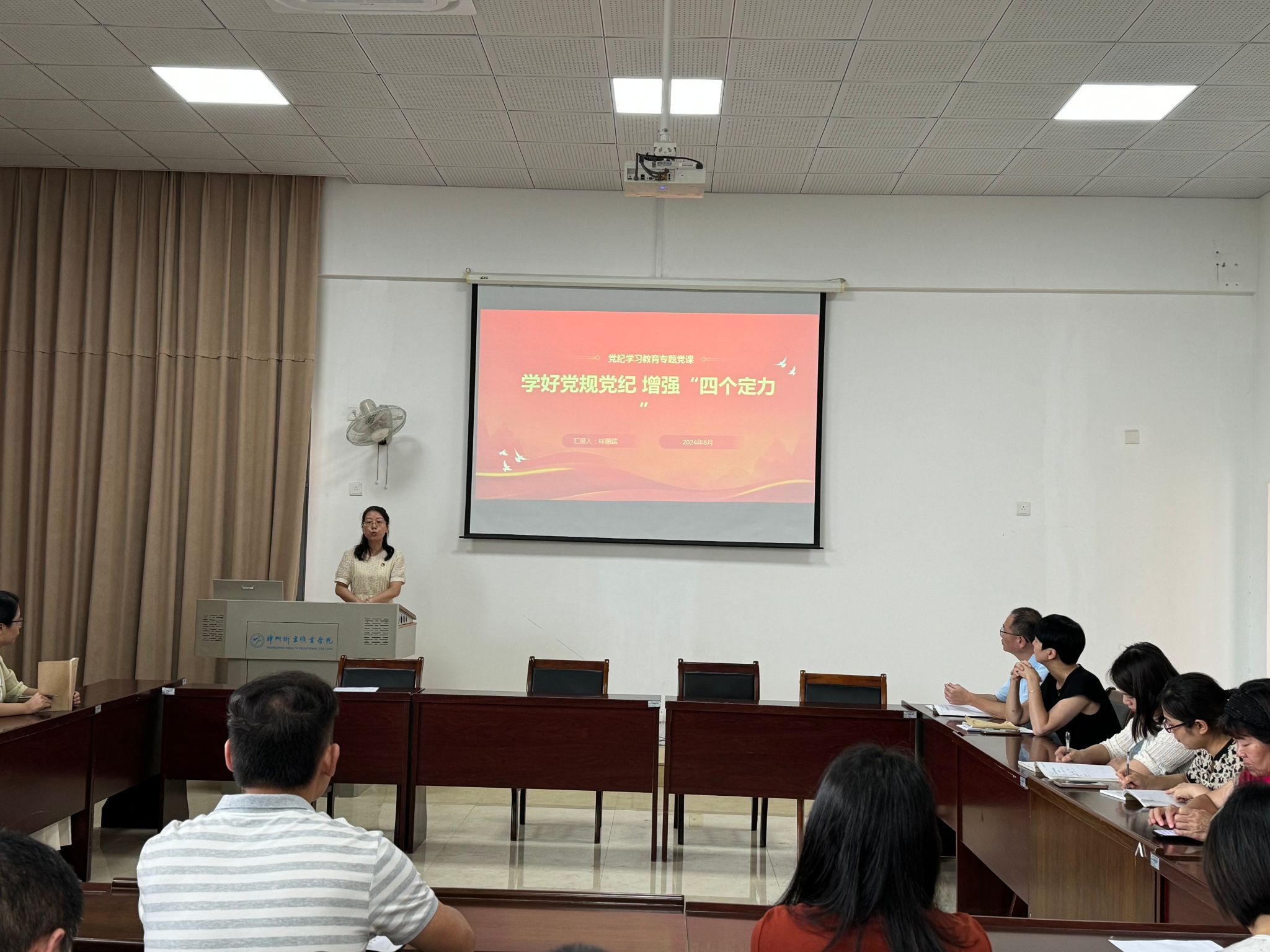 为进一步推进党纪学习教育走深走实,营造风清气正的良好政治生态,锻造忠诚干净担当的党员干部队伍,6月18日,我院党总支书记结合《中国共产党纪律处分条例》,以《学好党规党纪 增强“四个定力”》为题,为全体教职员工上了一堂生动的党纪学习教育专题党课。