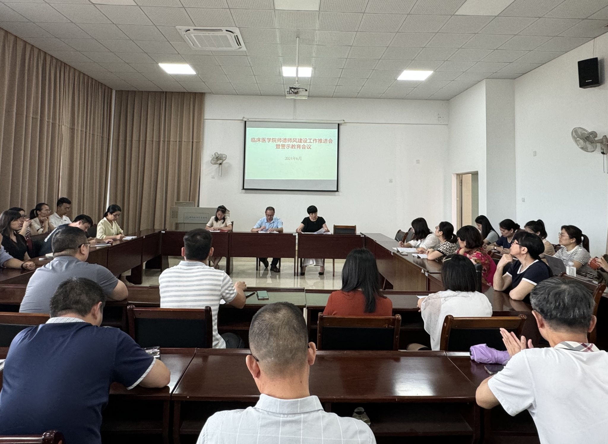 会上,党总支书记传达了《临床医学院2024年教师思想政治和师德师风建设工作实施方案》文件精神,并运用违法违纪案件开展警示教育。她强调,全体教职工要筑牢思想防线,保持清醒头脑。一桩桩鲜活典型的腐败案例,揭示了党员干部丧失理想信念、不讲原则和守不住底线。全体教职工要自觉把坚定理想信念、严格律己作为加强自身修养的重要内容,并将其融入自己的学习、生活和工作之中。要正确对待名利,把牢关键环节。“千里之堤,溃于蚁穴”。全体教职工要正确看待个人名利得失,要筑牢拒腐防变的防线,始终保持高度警惕和良好心态,树立正确的观念,自觉抵制不良思想的侵蚀,切实做到未雨绸缪,防患于未然。要严于律己,带头遵纪守法。法律面前人人平等,全体教职工要严格遵守党纪国法,处理好义与利、个人与集体、言与行的关系,增强自身的守法意识,言行一致、表里如一。