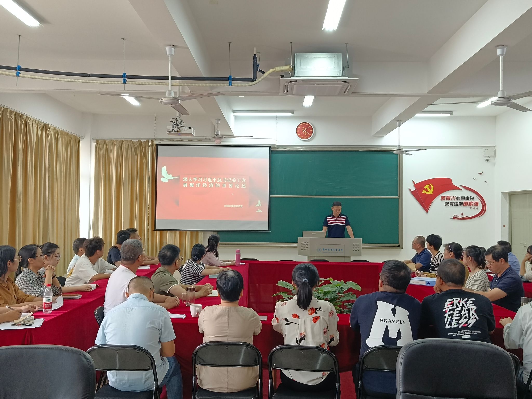 为学习贯彻习近平总书记主题教育工作会议系列重要讲话精神,认真贯彻主题教育工作总要求,10月17日下午,我院开展学习习近平总书记关于发展海洋经济的重要论述、习近平总书记关于发扬斗争精神、应对风险挑战的重要论述主题教育专题学习会。本次会议由组织委员黄老师主讲,院部全体教职工参加。