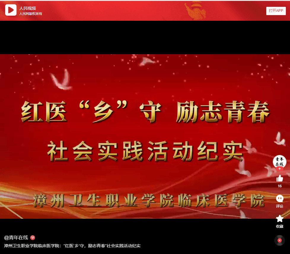 人民网视频:漳州卫生职业学院临床医学院:“红医‘乡’守,励志青春”社会实践活动纪实