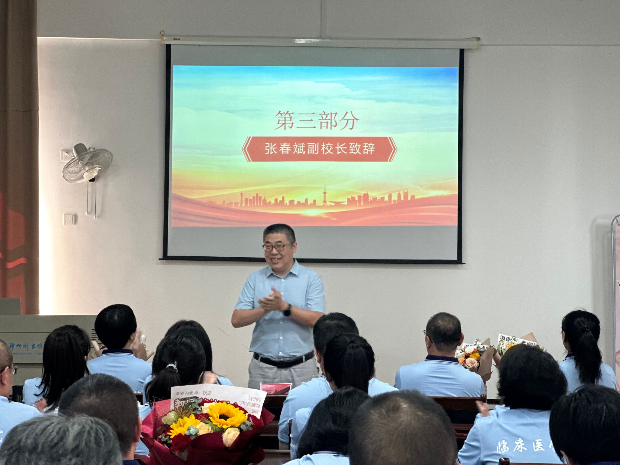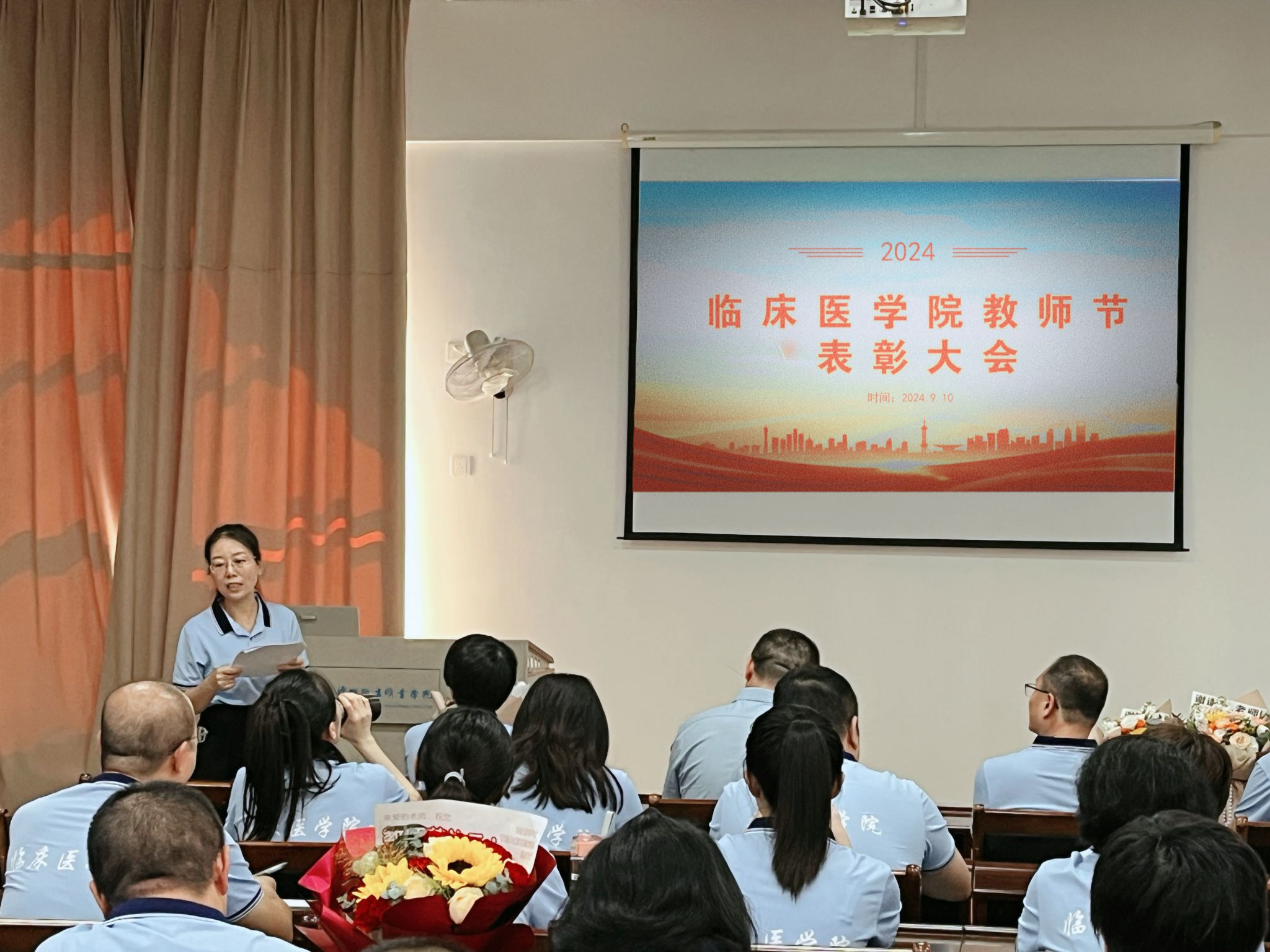 张春斌向全体教师的辛勤耕耘和付出表示衷心的感谢并致以节日的问候。他指出,从教学质量的稳步提升,到科研创新的不断突破;从校园文化的日益丰富,到学生综合素质的全面提高,每一项成就都凝聚着全体教职工的智慧与汗水。他强调,全体教师要做到“学高为师,身正为范”,不断提升自己的学识和能力水平,注重自己的品德修养和行为规范,成为学生心目中的好老师,为他们的成长和发展贡献自己的力量。继续发扬爱岗敬业、严谨治学的精神,不断提升自己的专业素养和教育教学能力,成为学生成长道路上的良师益友。同时,也希望大家在忙碌的工作之余,注意身体健康,保持愉悦的心情,享受工作的乐趣和生活的美好。会上,张春斌和学院院长分别为获奖教师颁奖。