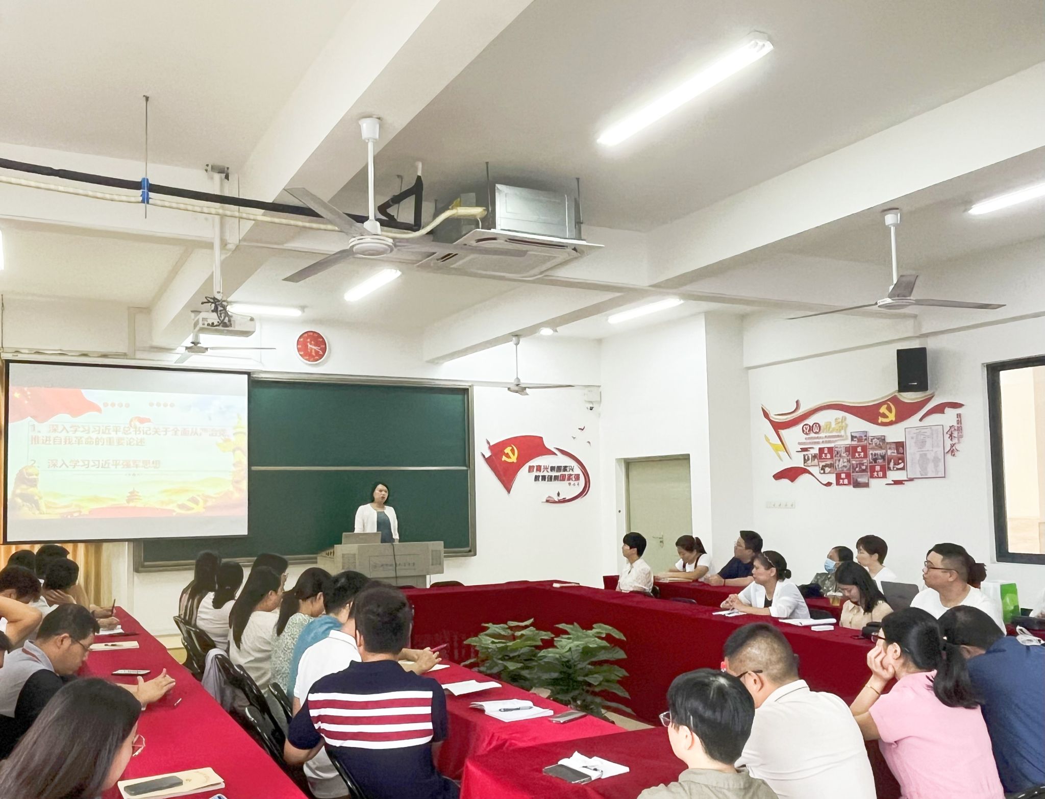 会上,教职工学习了习近平总书记关于全面从严治党、推进自我革命的重要论述、习近平强军思想、《论党的自我革命》和《习近平强军思想学习纲要(2023年版)》书籍内容。