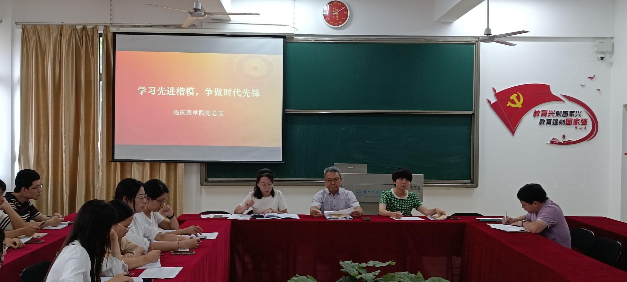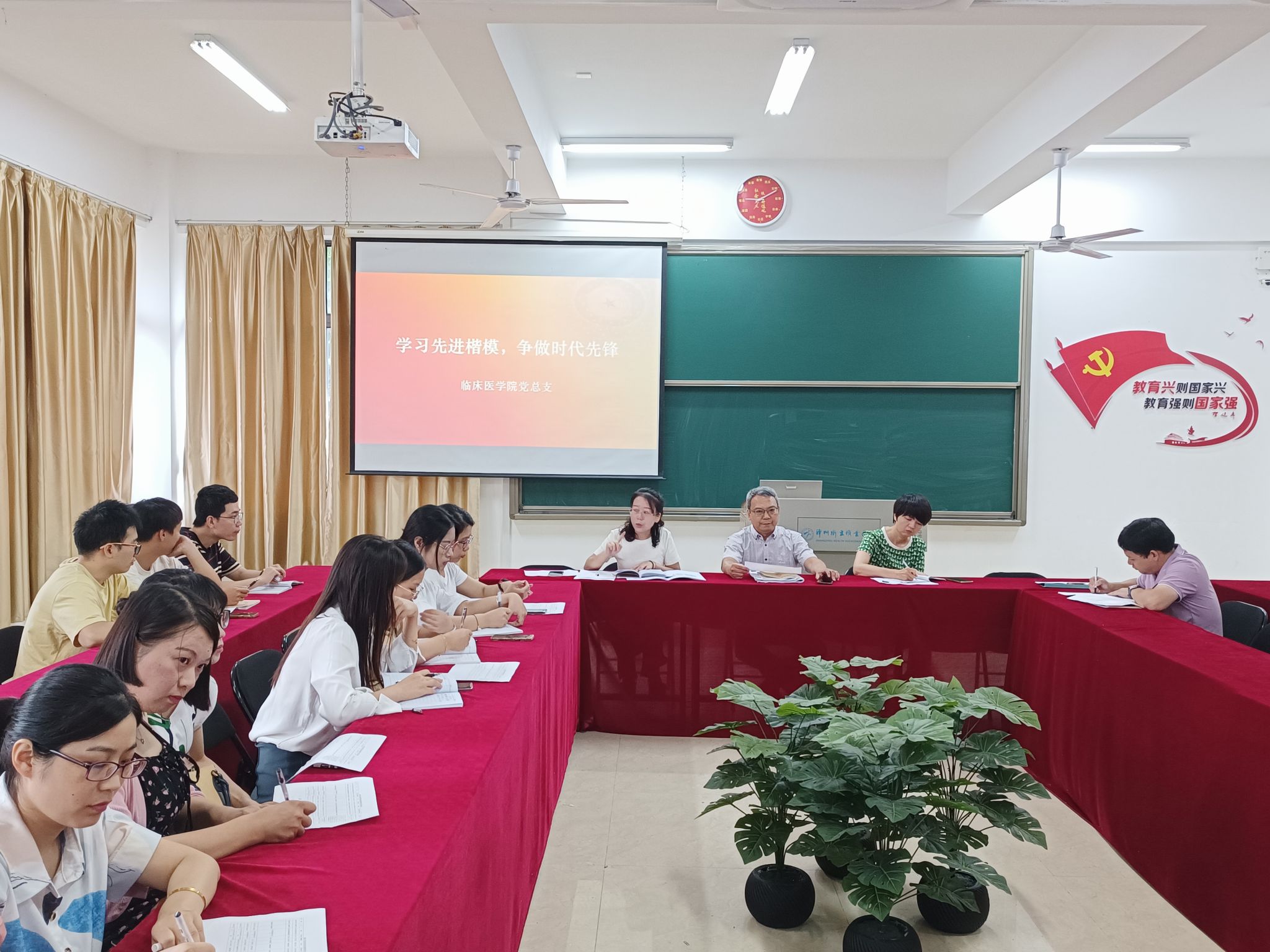 为庆祝中国共产党成立102周年,深刻领悟习近平新时代中国特色社会主义思想和党的二十大精神,增强党组织凝聚力和战斗力,充分发挥党员先锋模范作用,7月2日,临床医学院党总支组织开展“学习先进楷模,争做时代先锋”七一主题党日活动。本次活动由临床医学院党总支副书记林老师主持,学院党内外教师参加。