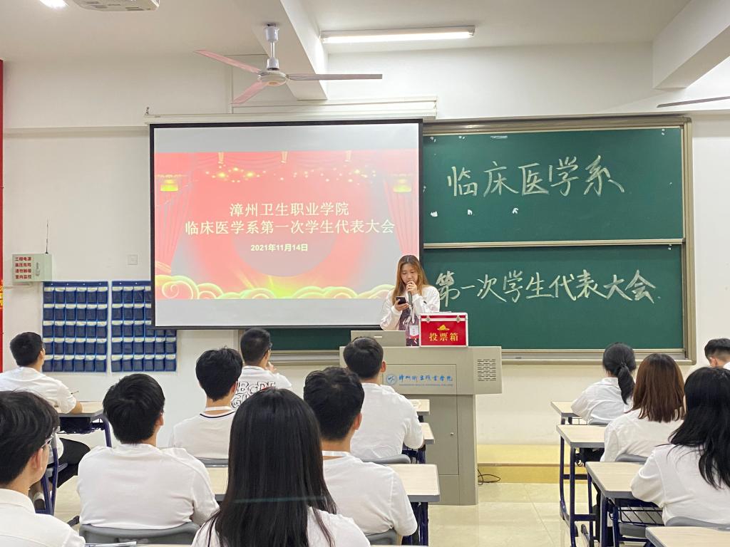 2021年11月14日下午,漳州卫生职业学院临床医学系第一次学生代表大会在厚德楼305顺利召开。会议共两场——预备会议和正式会议。系团总支书记和系各级学生代表出席了本次学生代表大会。