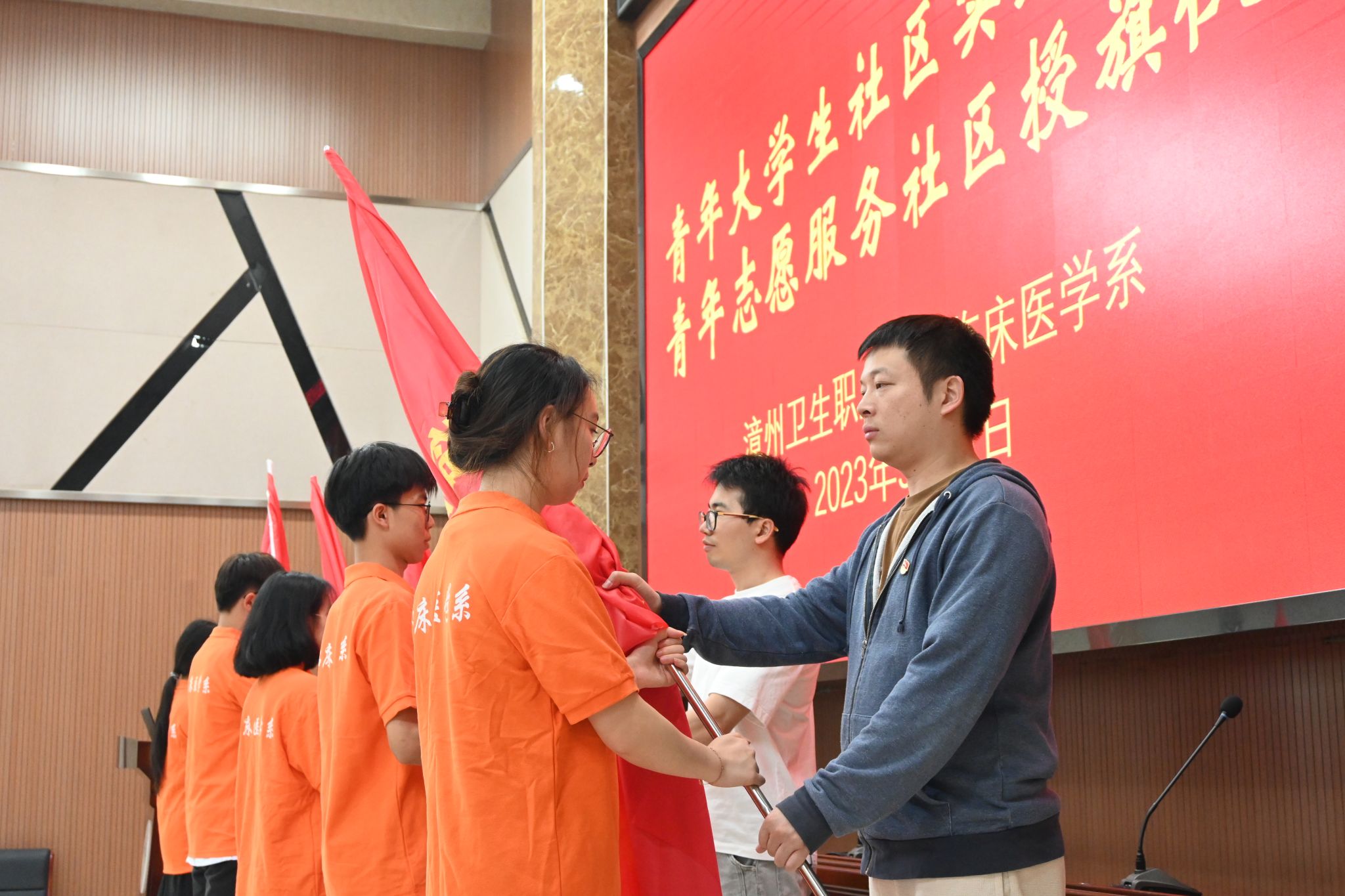 授旗仪式上,临床医学系党总支副书记对大学生社区实践计划做了全面的介绍,鼓励学生走进社会基层,了解社会实际、服务人民群众、增强时代责任感、提高社会化能力。随后,系部学工队伍为10个班级团支部授旗,并带领他们进行志愿服务宣誓。“此次授旗和宣誓,让我内心热血澎湃,我将尽我所能,为服务社区贡献青春力量!”2022级高职预防医学班团支书许铭珊激动地说。