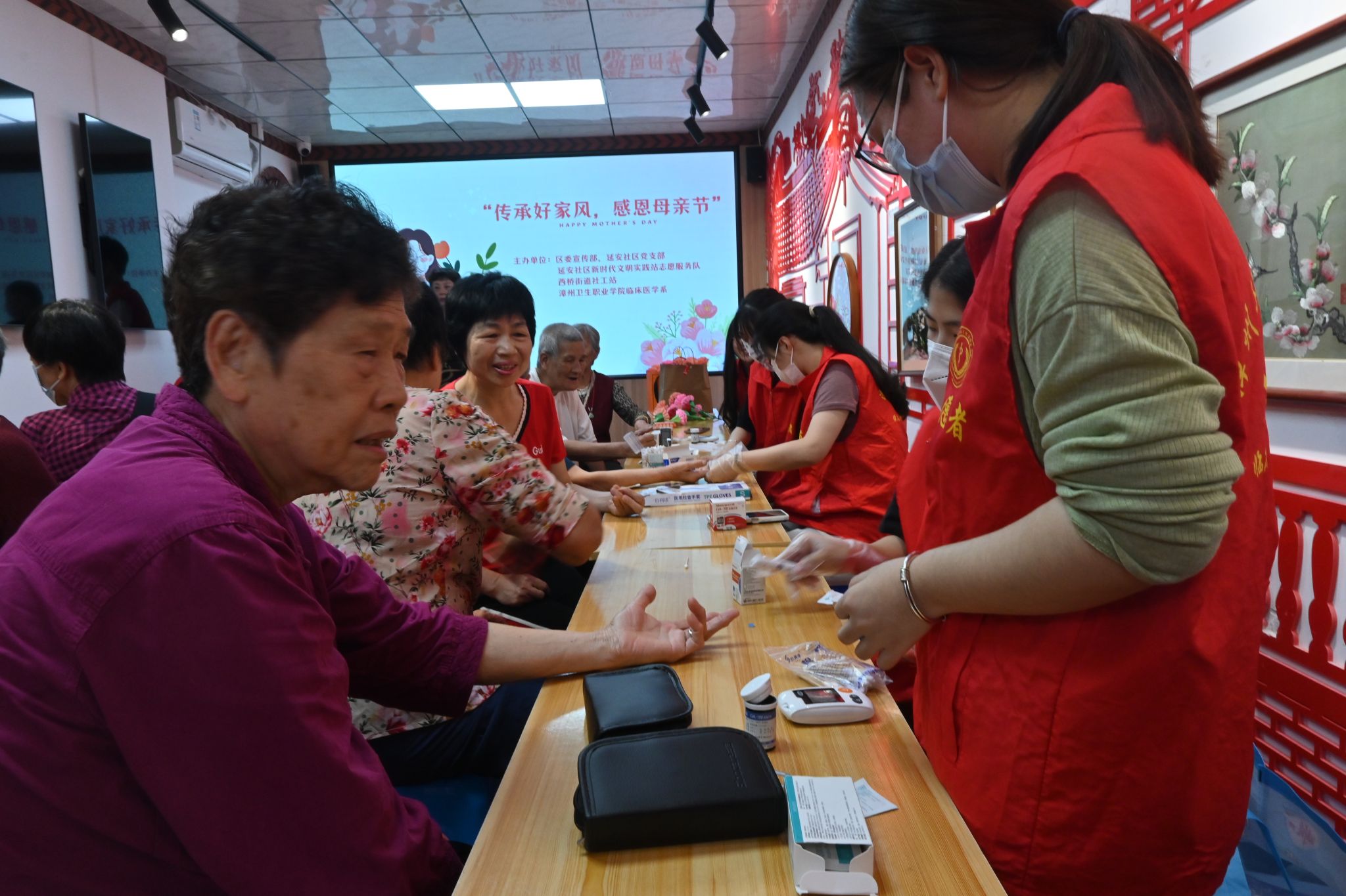 老吾老以及人之老,幼吾幼以及人之幼,为助力社区弘扬中华民族孝亲敬老的优良传统美德,营造尊重母亲、感恩母亲的良好氛围,临床医学系组织师生代表共20余人,前往共建社区——西桥街道延安社区开展“以爱之名,感恩有您,致敬天下母亲”的母亲节活动。在活动现场,志愿者发挥自身所学,为社区居民进行量血压、测血糖、测尿酸等健康服务,并为女性居民普及预防妇科病等知识,并献上了纯手工制作的康乃馨和生活用品,为社区的母亲们送去节日的问候和诚挚的祝福。