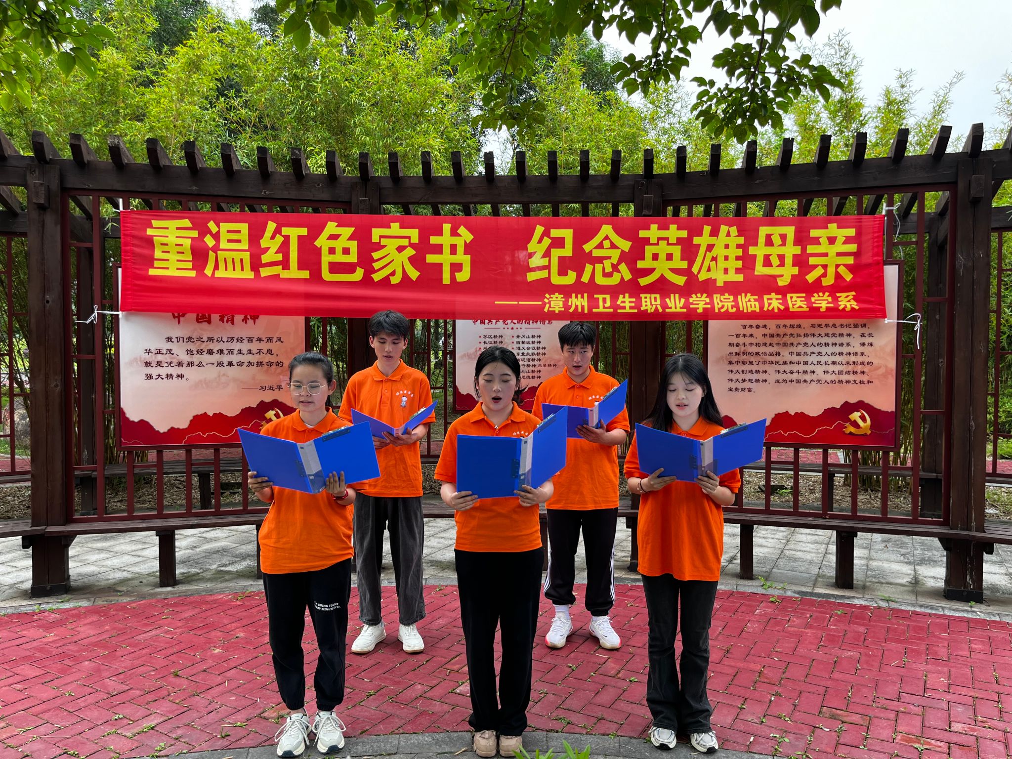 在中国共产党百年奋斗征程中,曾涌现出很多伟大的女性革命者,她们为了中华民族的解放事业,舍小家为大家,用拳拳赤子之心诠释了革命者最深沉的母爱、最无私的情怀。为了缅怀先烈,致敬过往,也为了铭记历史,5月13日,临床医学系组织部分师生在学院筑梦园开展红色家书主题诵读活动,杨开慧的《我决定把他们托付你们》、赵云霄的《你的父母是共产党员》《赵一曼烈士的家书》等。红色家书,纸短情长,催人泪下。读完家书,现场气氛肃穆,部分同学热泪盈眶。2022级高职健康管理二班戴琳贞同学激动地说,“这些家书承载着舐犊情深的人间至爱,闪烁着追求真理的精神之光,英雄母亲真的好伟大”。