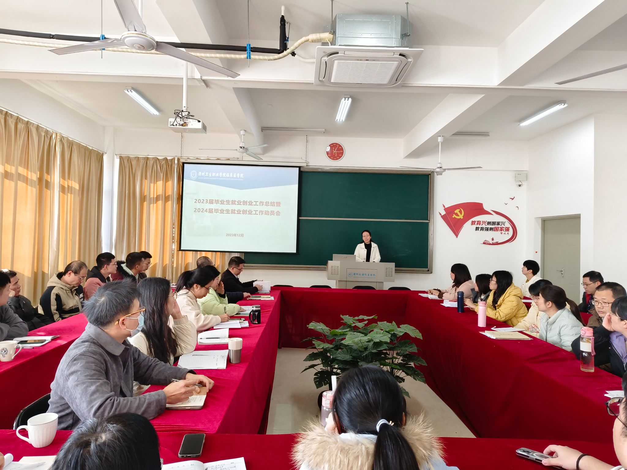 为深入学习贯彻习近平新时代中国特色社会主义思想,推动主题教育走深走实,12月26日下午,我院组织召开2023届毕业生就业创业工作总结暨2024届毕业生就业创业动员会。副校长蔡韶滨、我院院长、党总支副书记、副院长及全体教职工参会。