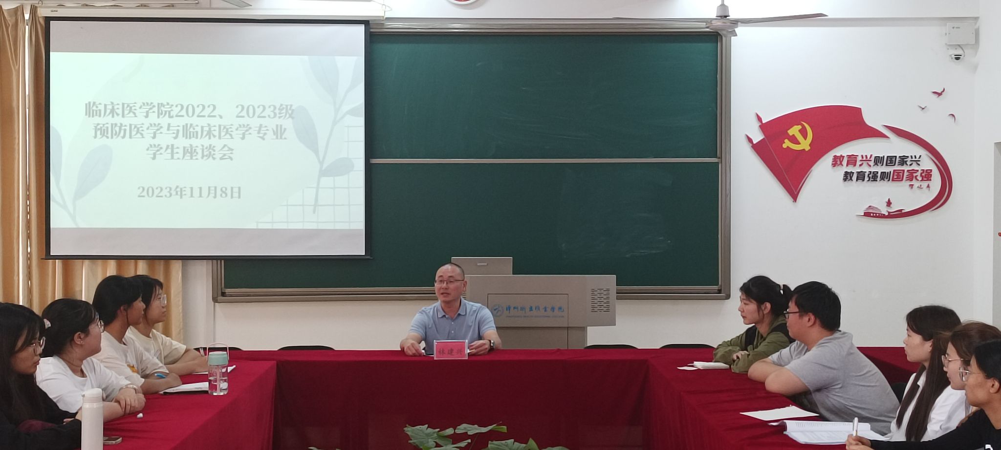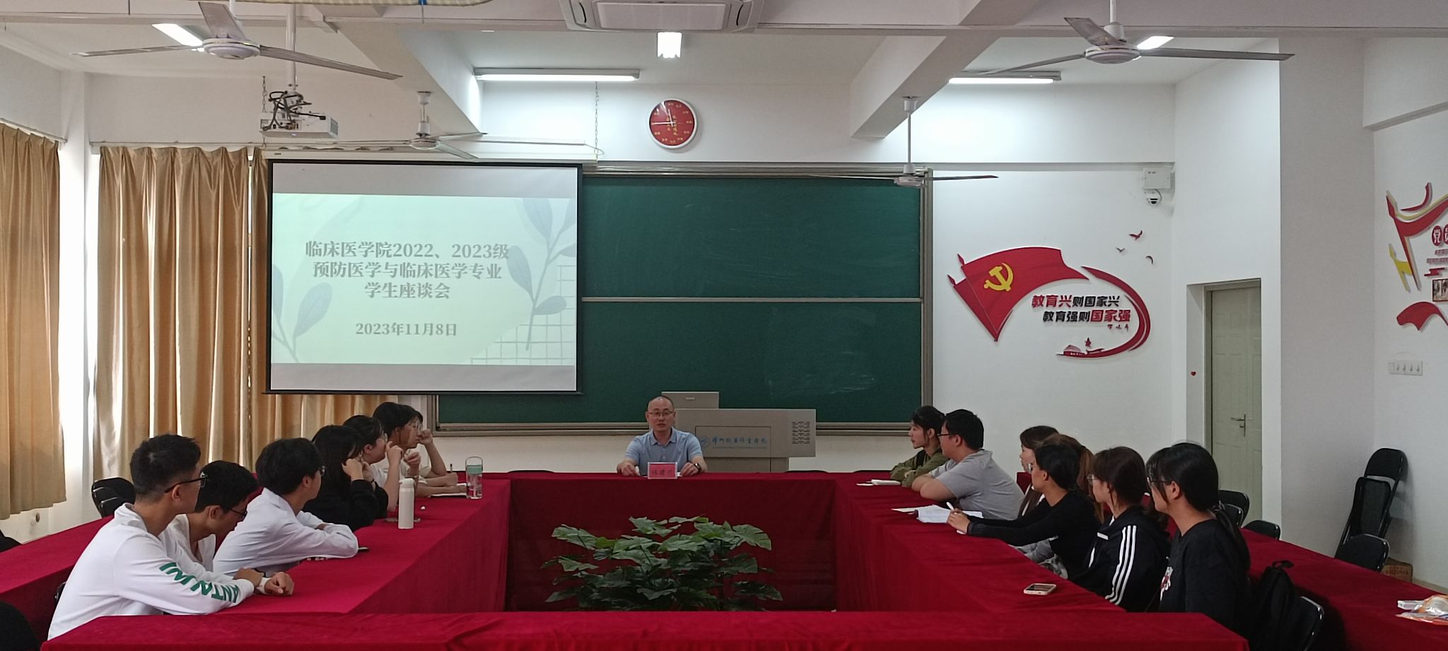 为深入学习贯彻习近平新时代中国特色社会主义思想,推动主题教育走深走实,切实了解我院预防医学和临床医学专业学生在学习和生活方面的诉求,提升学院育人成效,11月8日,我院院长林老师与2022级、2023级预防医学专业和临床医学专业的学习委员开展座谈。