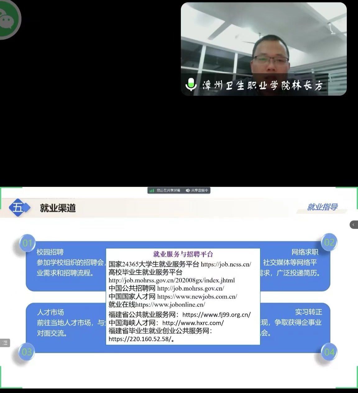 为全力促进2024届毕业生高质量充分就业,指导和帮助未就业毕业生合理规划职业目标,3月24日,我院卫生信息管理专业带头人林长方副教授为专业学生召开线上就业指导讲座。