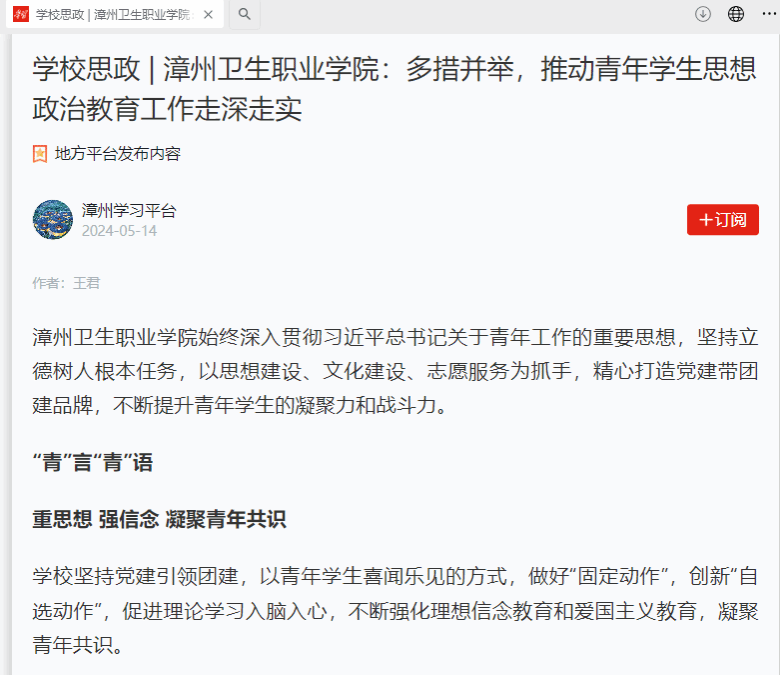 学习强国:学校思政 | 漳州卫生职业学院:多措并举,推动青年学生思想政治教育工作走深走实