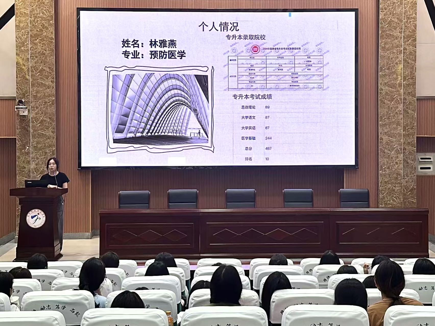 会上,2021级高职临床医学六班陈余凤、2021级高职预防医学班林雅燕,结合切身备考经历,围绕专升本的复习方法、备考课程安排与复习计划等方面为同学们进行详细讲解。她们强调,“成功并非偶然,而是付出的结果”,要制定合理的学习计划,做到“深学”“细悟”“做实”,注重基础知识的掌握,做好时间管理,加强自我激励。同时,她们鼓励广大学子要进行个人生涯规划,坚定理想信念、锤炼过硬本领,努力成长为可堪民族大任的栋梁之才。