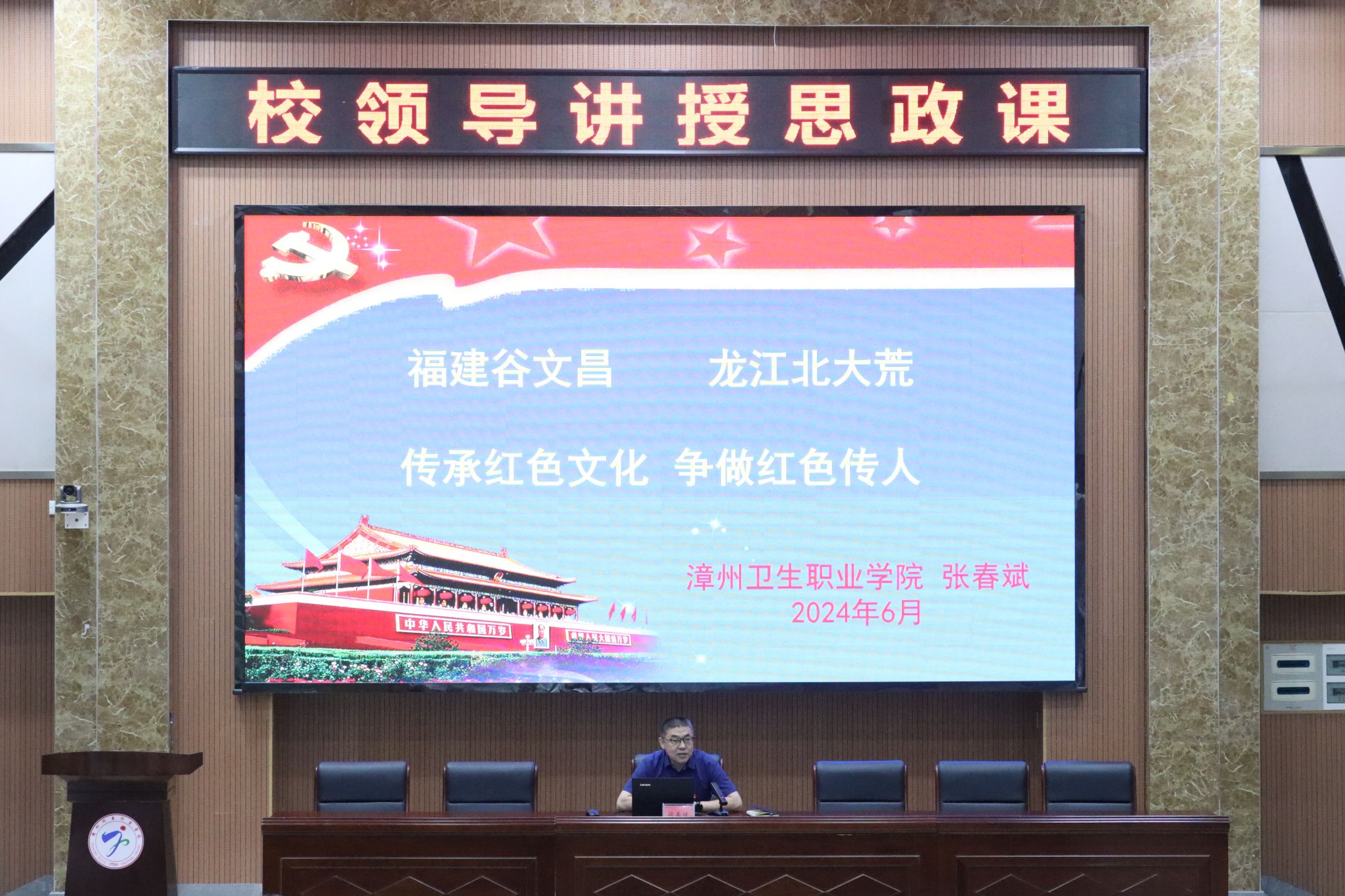 6月5日,副校长张春斌以《福建谷文昌 龙江北大荒——传承红色文化 争做红色传人》为题,为2023级高职临床医学五班、2023级高职预防医学班和临床医学院2024届毕业生代表讲授思政课。