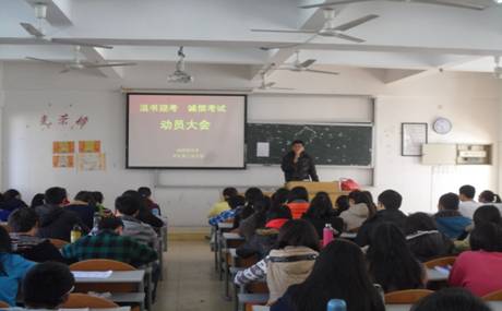 为树立学生诚信为本的道德观念,营造积极向上的考试气氛,进一步推进公平公正的考风考纪建设,以期末温书迎考为契机,临床医技系学生第二党支部按照“践行群众路线教育,以党建促进学风建设”立项活动安排, 于2015年1月11日上午,在明德楼9教举行了“温书迎考,诚信考试”动员大会,支部全体党员教师以及所属支部全体学生参加了本次动员大会。